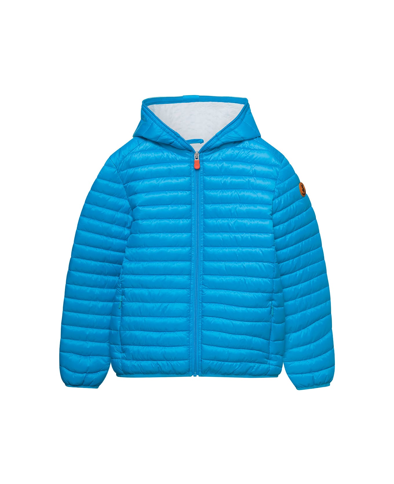 'gillo' Light Blue Hooded Down Jacket With Logo Patch In Polyeter Boy
