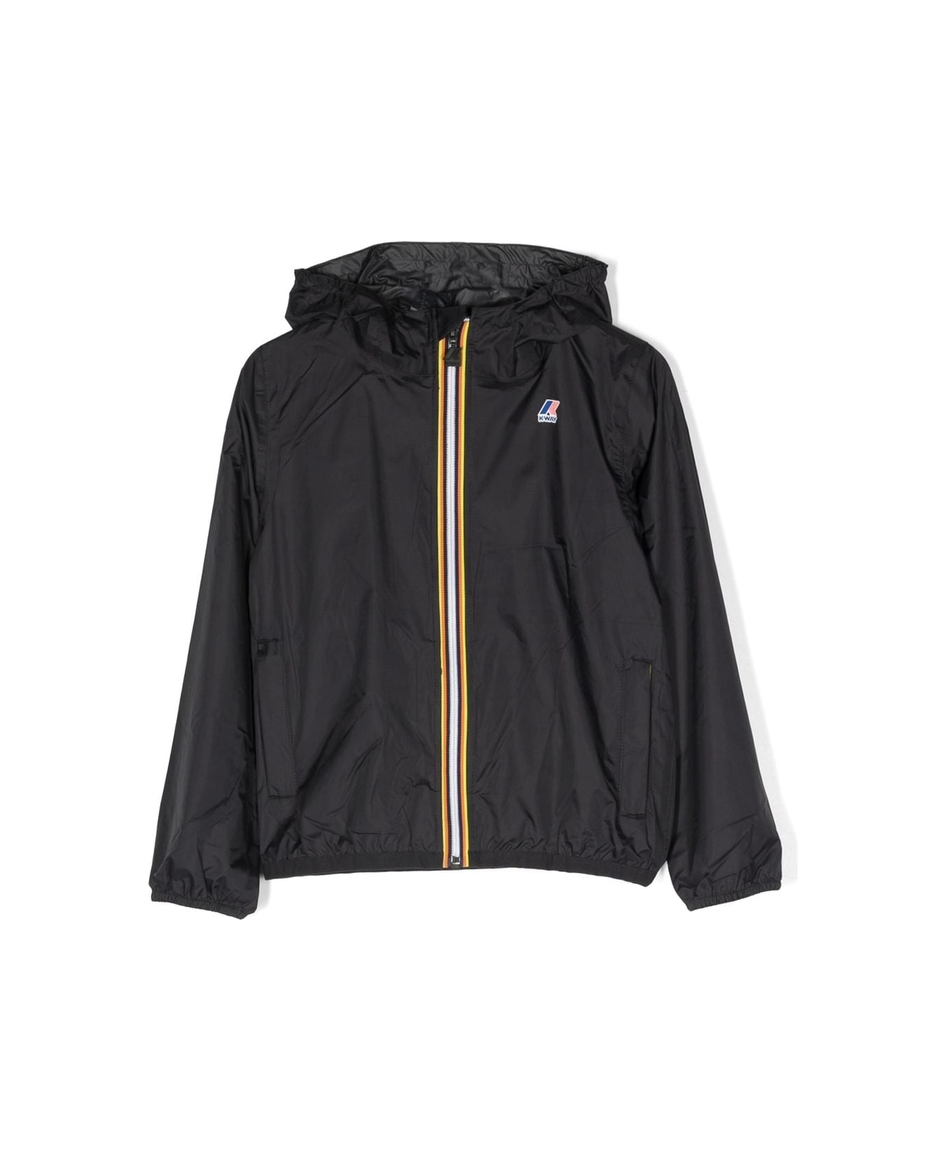 The iconic Claude short jacket reinterpreted for kids who love the K-Way style. The unisex model is made of waterproof and windproof ripstop fabric with heat-taped internal seams that guarantee excellent insulation from atmospheric agents. The strong point is the small volume it occupies once folded and packed in one of the two pockets. The perfect emergency garment to keep in your bag or backpack. Waterproof, water repellent, windproof, breathable ripstop fabric Packable Heat taped seams Hood with fixed elastic bands Zip closure Inner wind flap Ventilation cut on the back Wrists with elastic 2 zipped pockets Jacket bottom with elastic binding Colored printed logo
