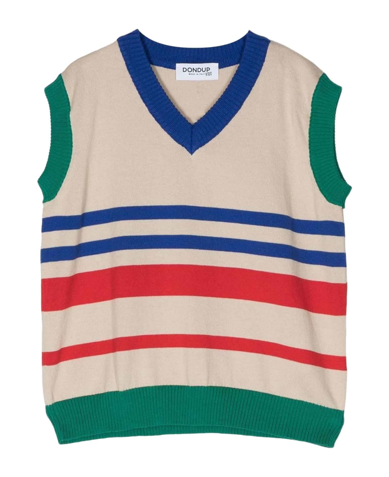 multicolor vest boy. horizontal striped pattern, ribbed trim, v-neck, sleeveless and straight hem. 100% Cotton