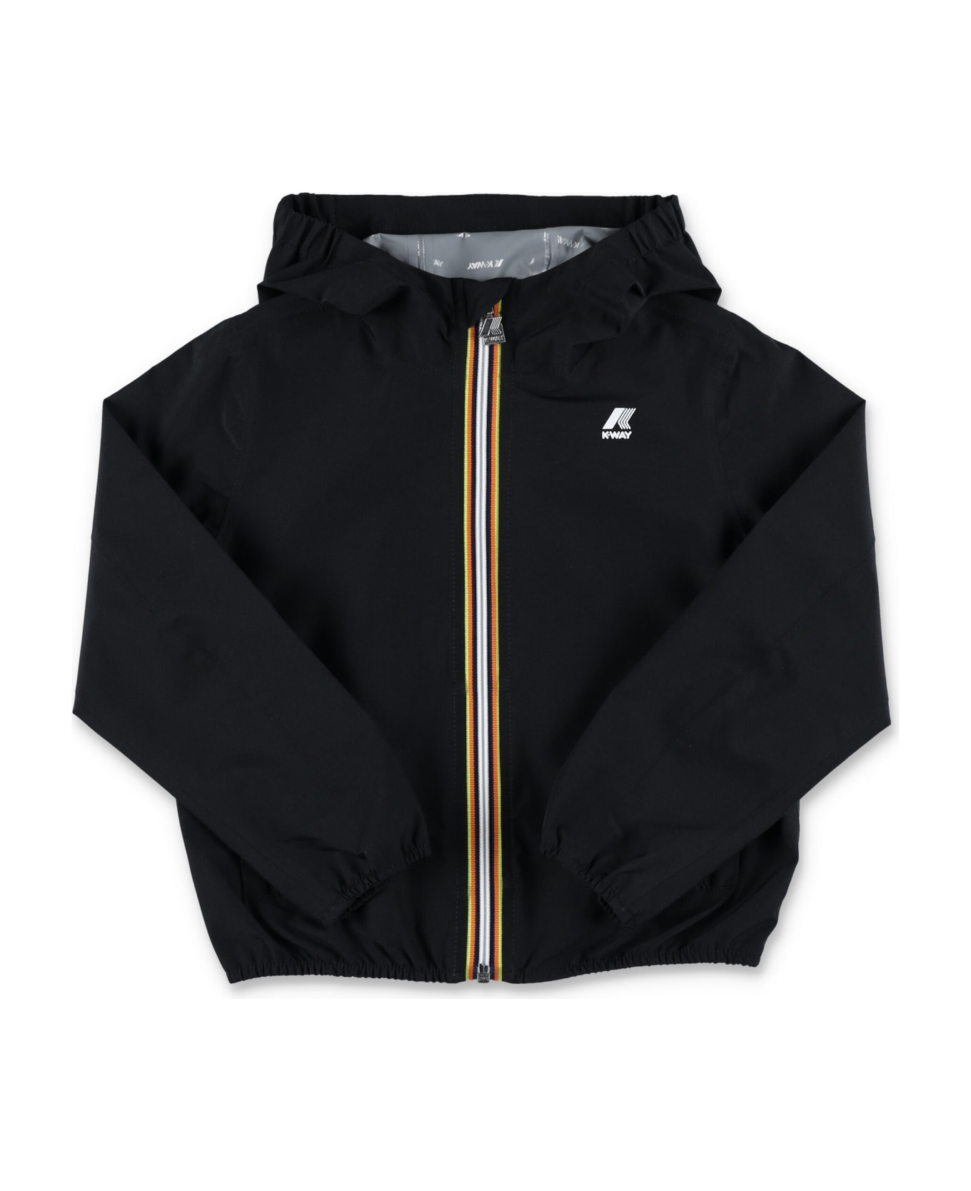 Nylon P. jack Stretch Dot By K-way. Featuring: Stretch Nylon Heat-taped Seams Waterproof, Water-repellent, Windproof And Breathable Ripstop Elasticated Hood Ventilation Opening Zip Fastening Elasticated Cuffs And Hem Two Zip Pockets Slim Fit White Logo Print