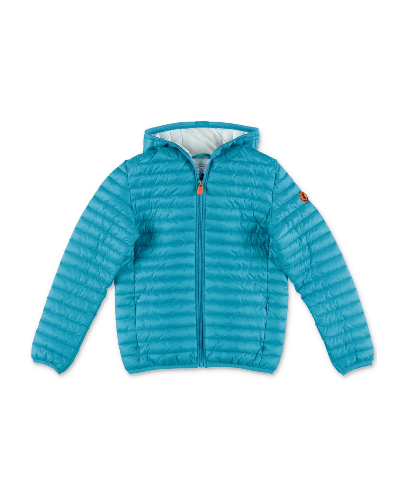 Save The Duck Giubbino Azzurro In Nylon Con Cappuccio Bambino