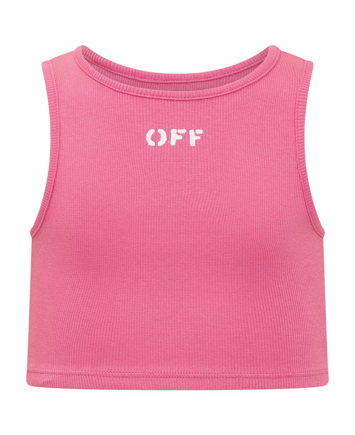 Ribbed top. Ribbed neck, bottom and shoulders. Logo printed on the front.