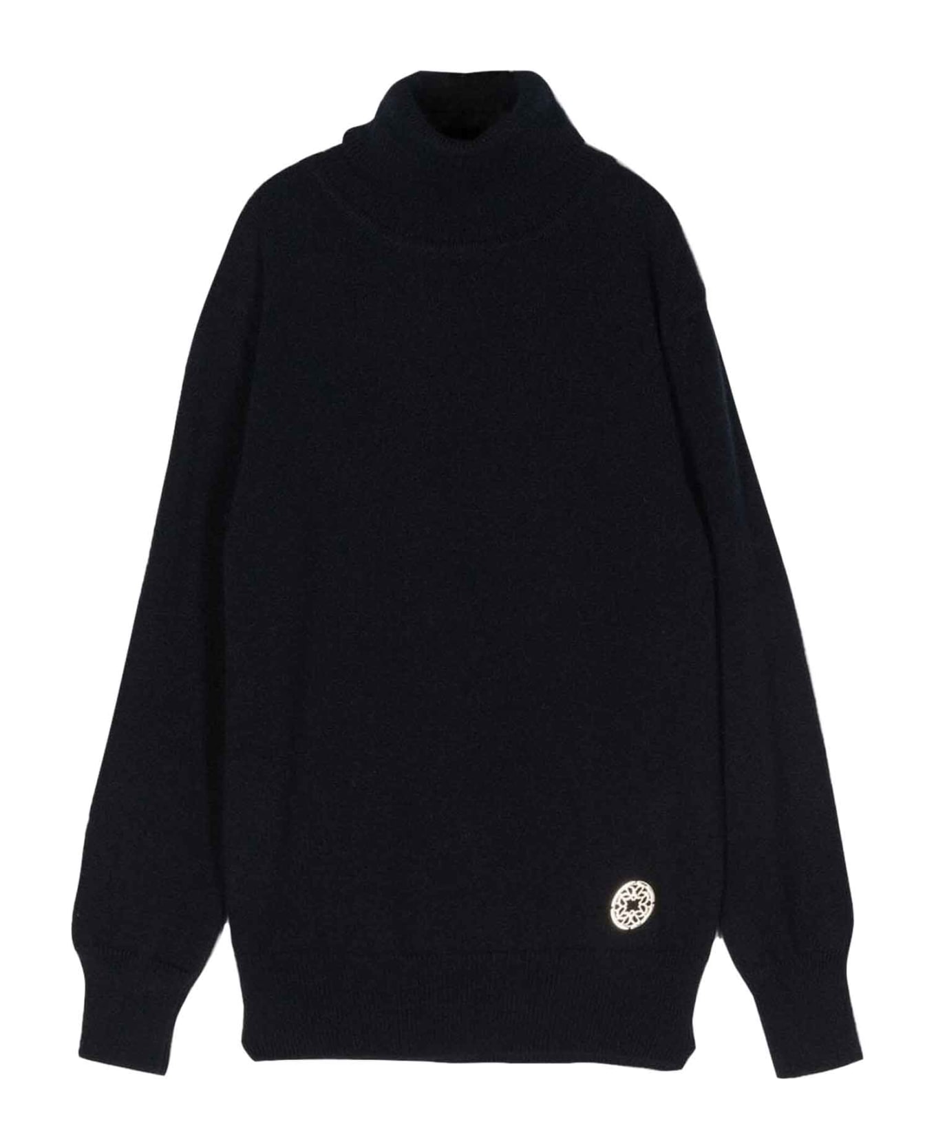 blue sweater boy. Ribbed hem, logo plaque, high collar, long sleeves and straight hem. Cashmere 100%