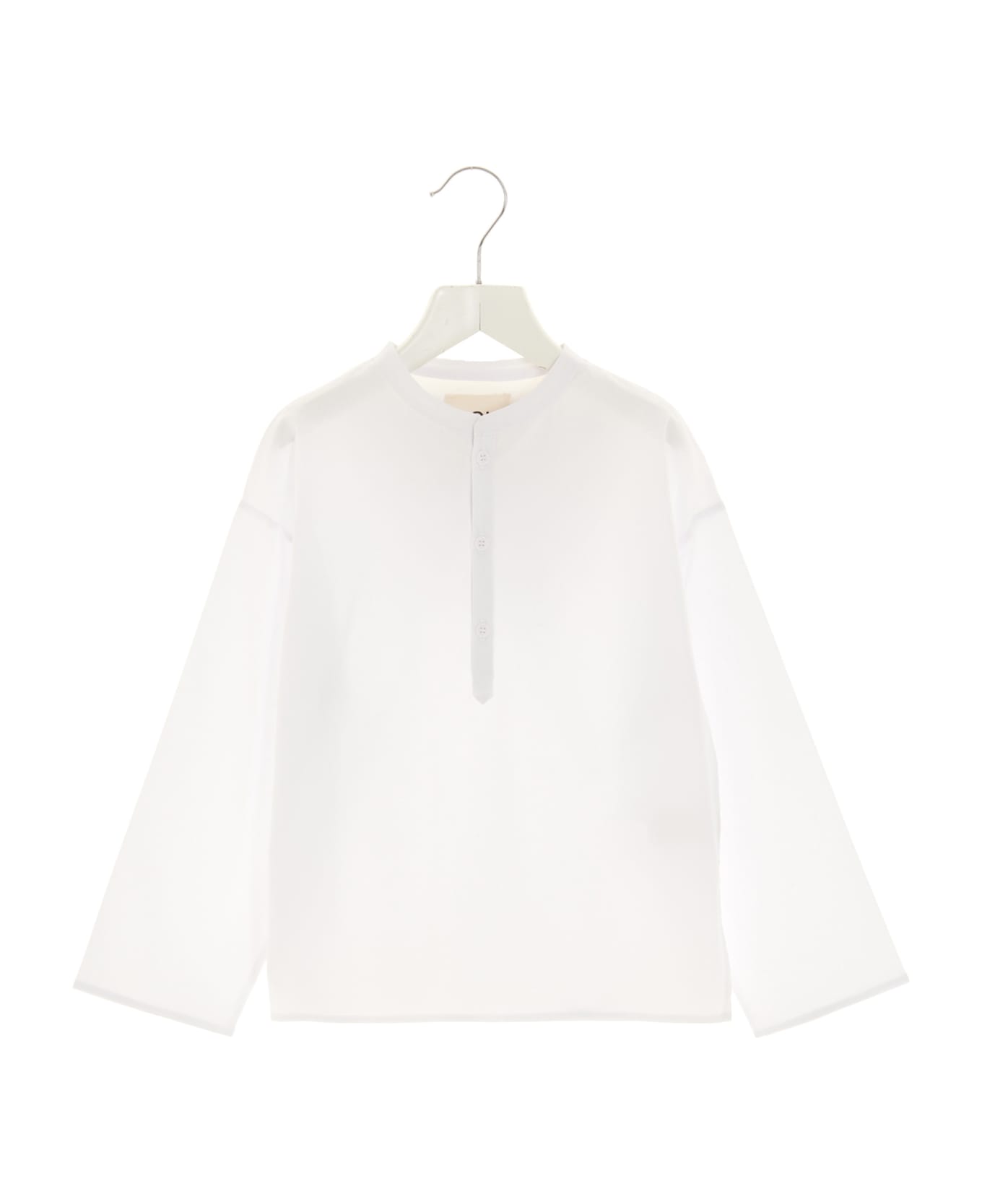 Stretch cotton shirt with mandarin collar.