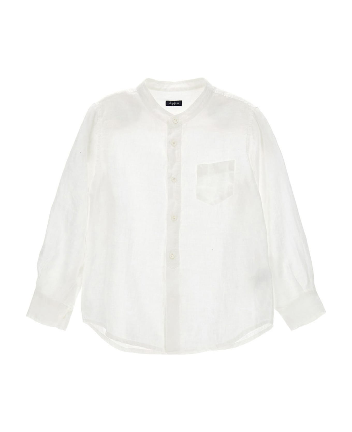Linen shirt with mandarin collar, a button closure and long cuffed sleeves.