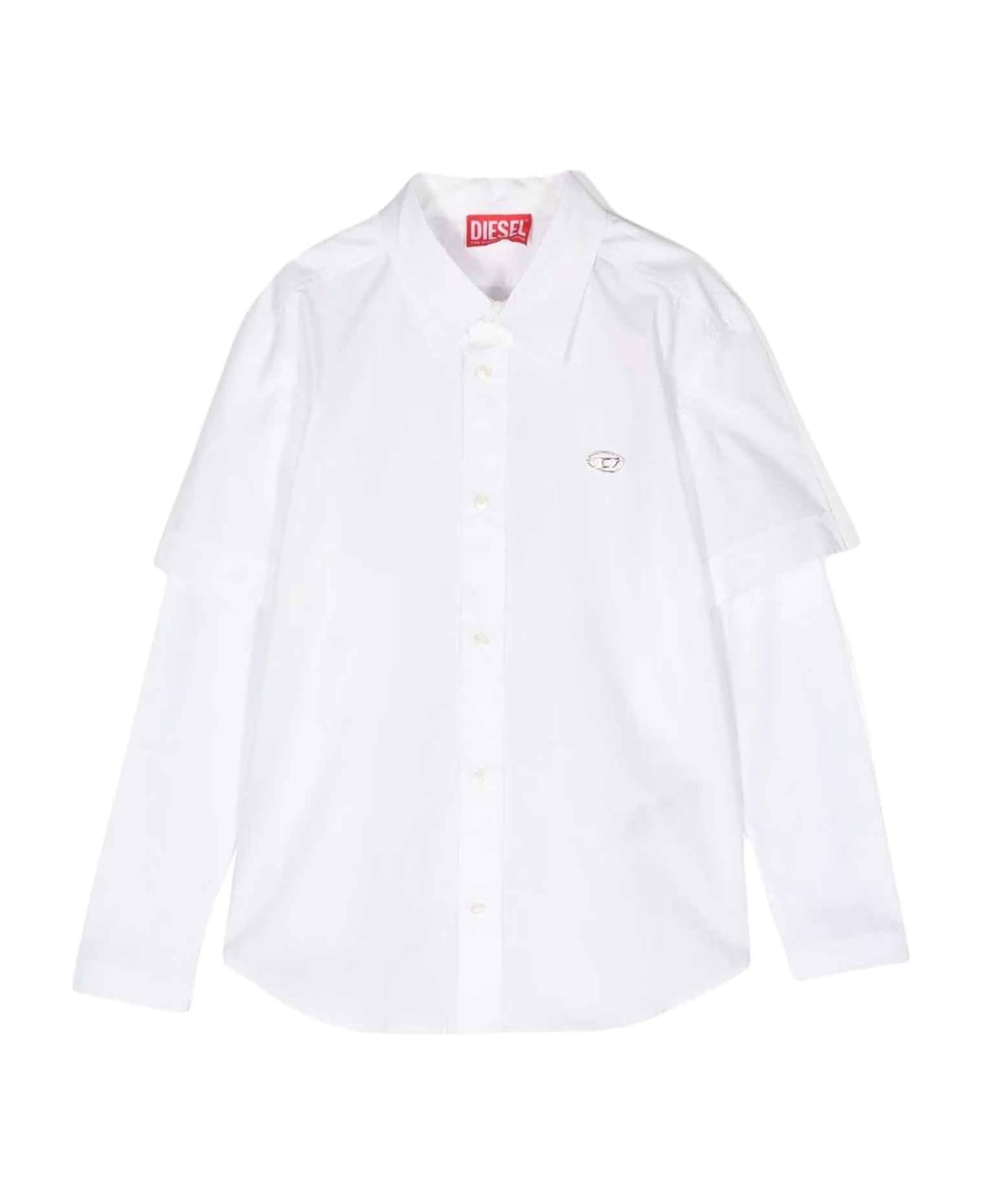 White shirt boy. Classic collar, long sleeves, logo on the chest and front buttoning. 100% Cotton