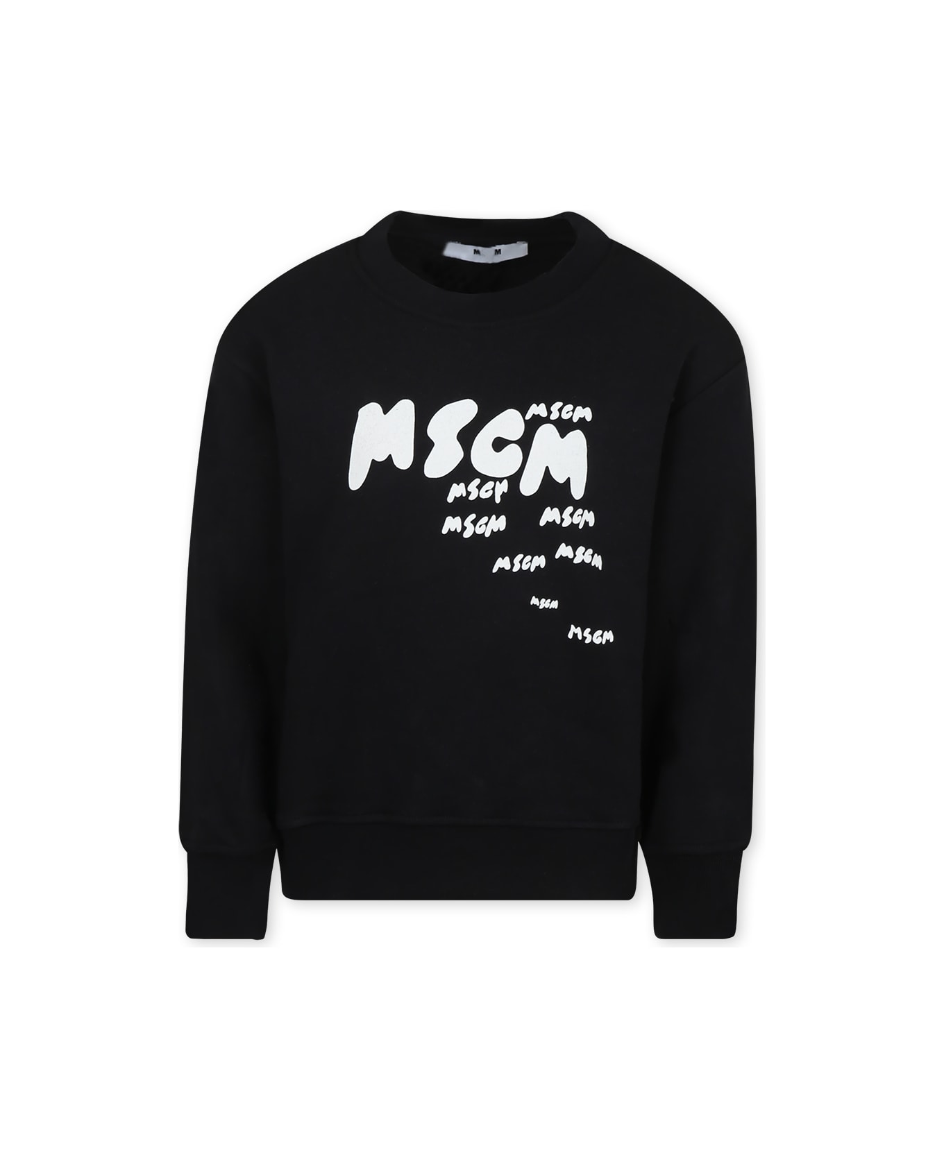 Black sweatshirt in brushed cotton, long sleeves, with ribbed crew neck, cuffs and hem. It is embellished with white MSGM logo printed on the front.