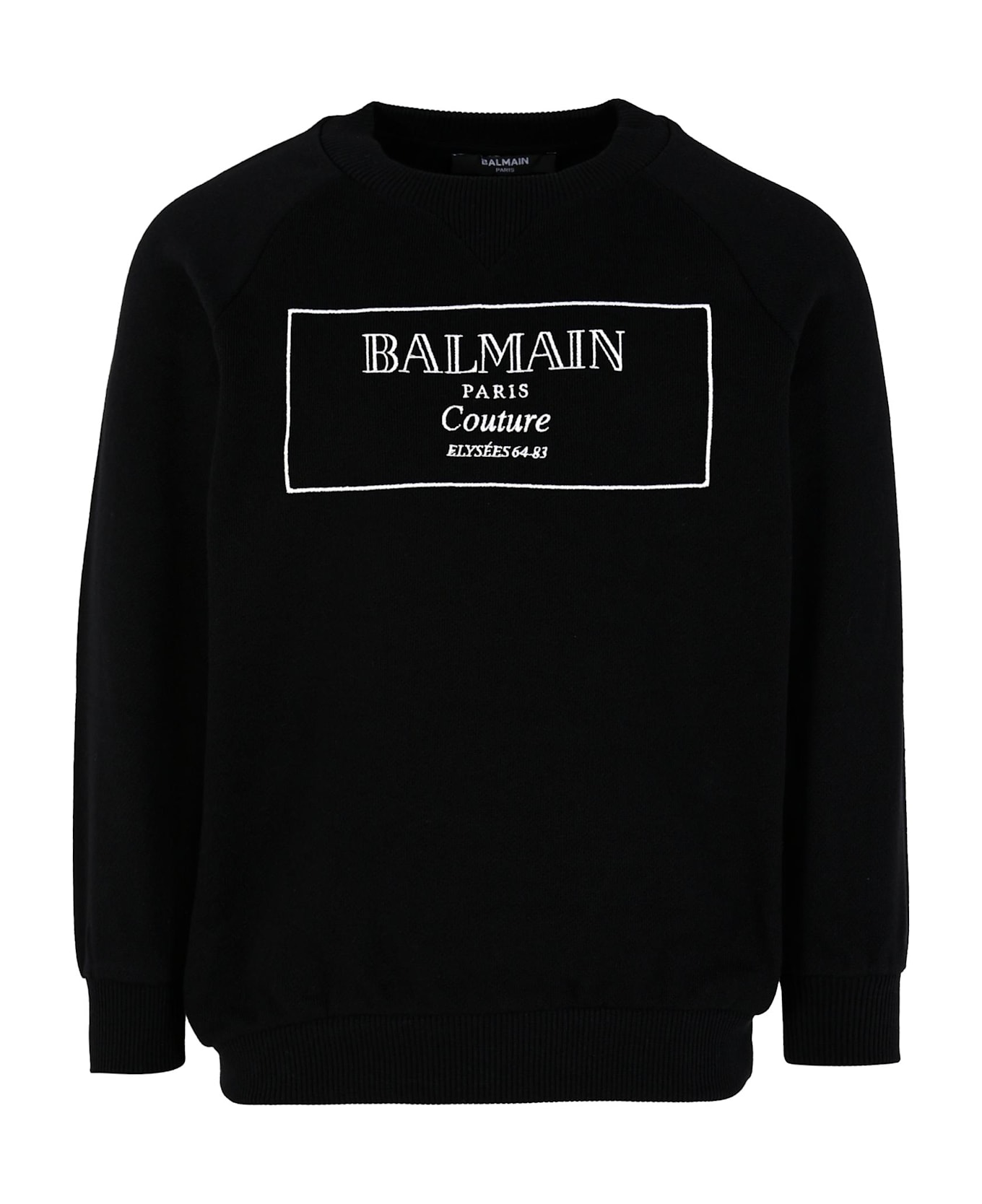 Black sweatshirt in lightly brushed organic cotton, long sleeves, with ribbed crew neck, cuffs and hem. It is embellished with Balmain Couture logo, embroidered on the front.