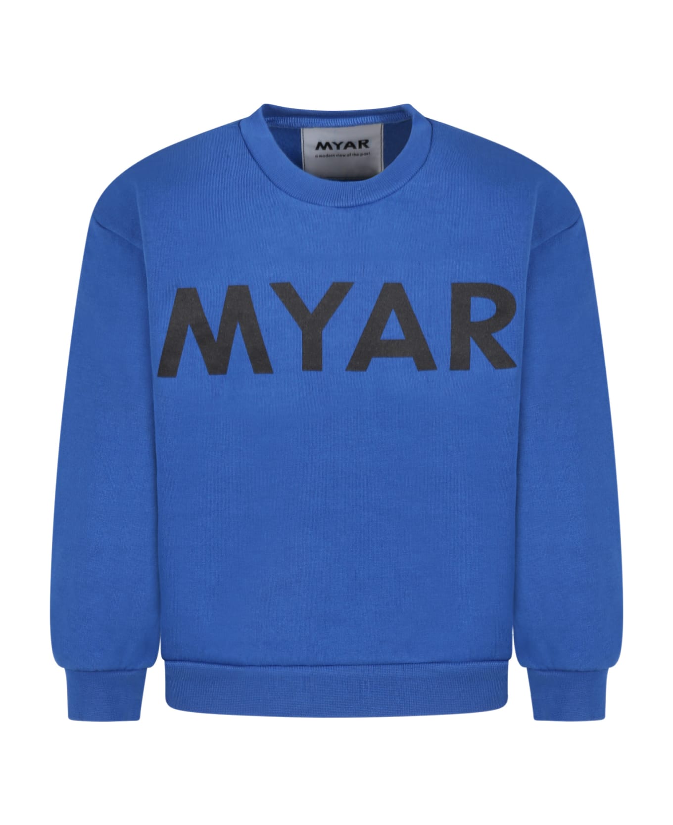 Blue sweatshirt, made from fleeced cotton, with long sleeves and ribbed crew neck. It is embellished with logo, on the front.