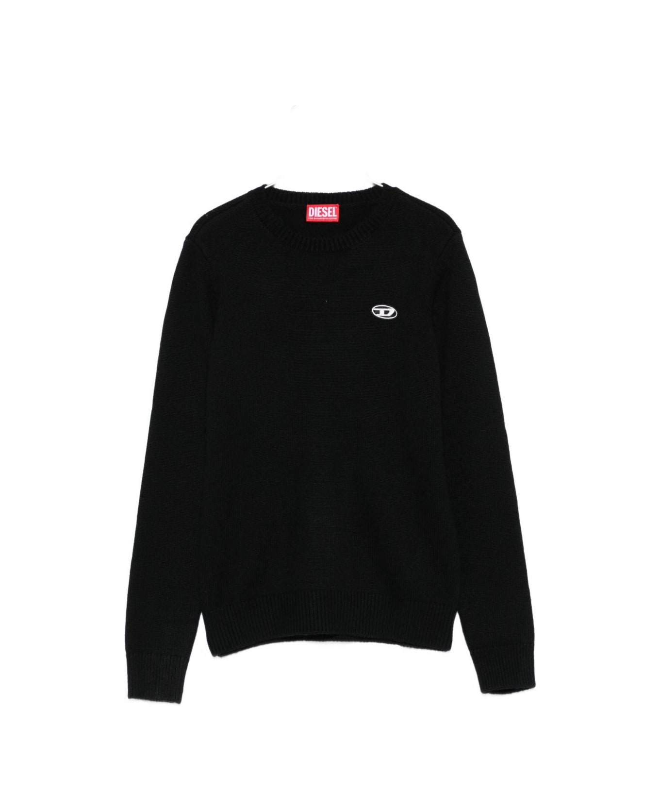 Diesel Kids Black crewneck long-sleeved sweater with logo embroidery Composition: 48% Polyamide, 27% Viscose, 20% Wool, 5% Cashmere