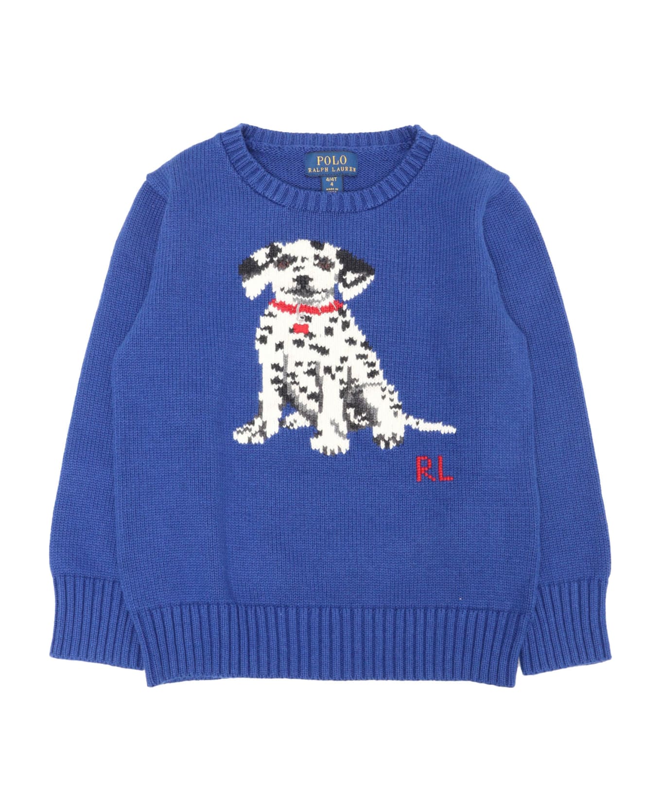 Cotton sweater, ribbed edges, front dog and logo inlay, crew neck