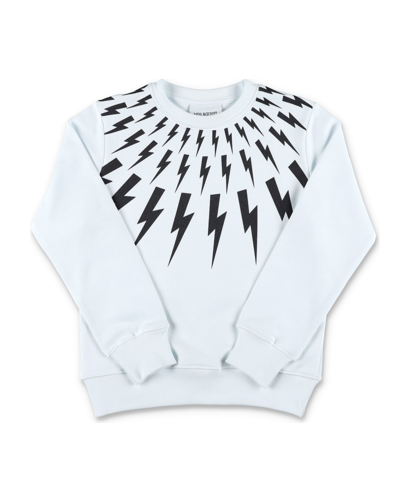 Cotton Fair Isle Thunderbolt Crewneck By Neil Barrett Kids. Featuring: Ribbed Crewneck Long Sleeves Signature Bolt Prints At Front Neil Barrett Logo At Rear Collar Ribbed Cuffs And Hem