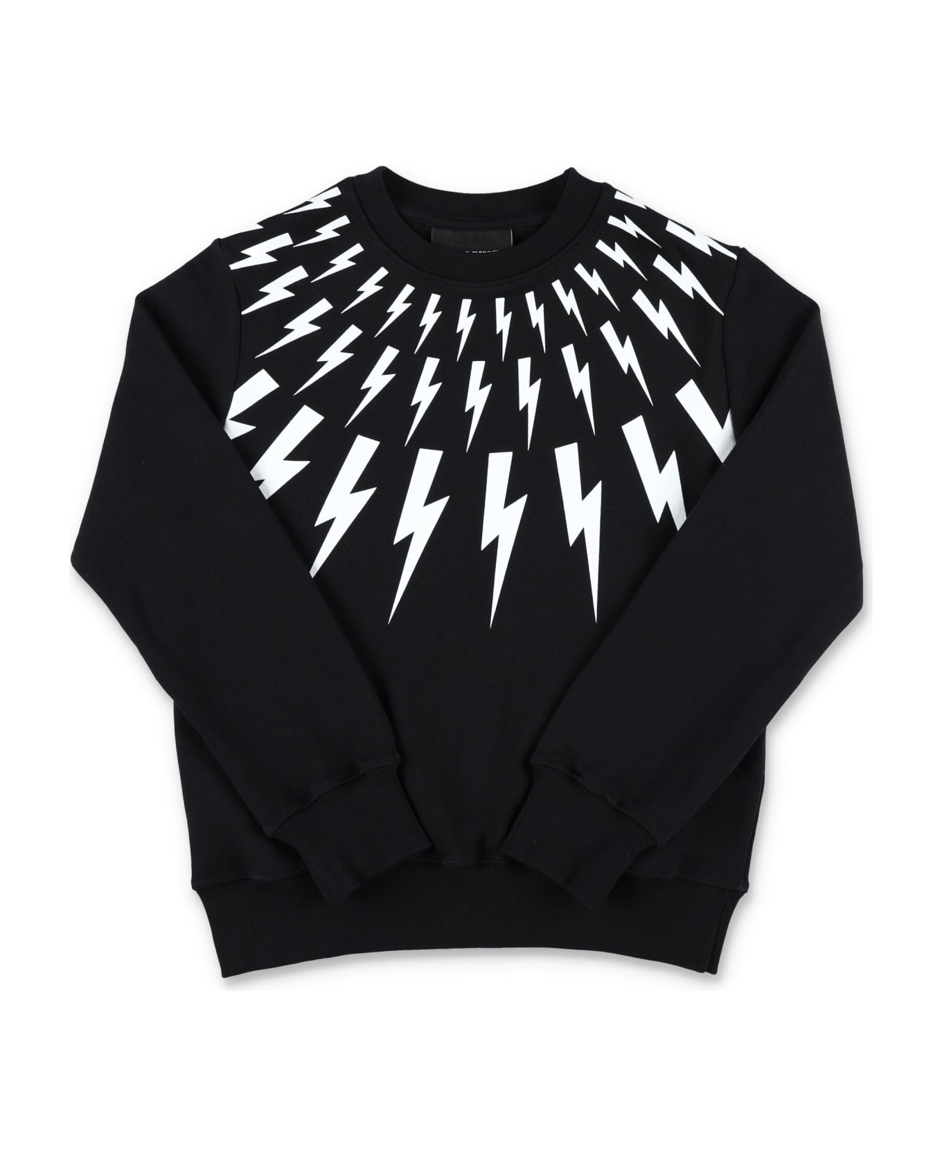 Cotton Fair Isle Thunderbolt Crewneck By Neil Barrett Kids. Featuring: Ribbed Crewneck Long Sleeves Signature Bolt Prints At Front Neil Barrett Logo At Rear Collar Ribbed Cuffs And Hem