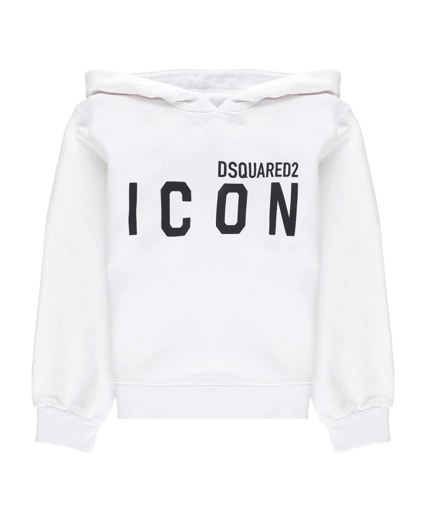 - White Dsquared2 Kids cotton hoodie for boy - Hood - Long sleeves - Front contrasting color logoed print - Elastic ribbed trims