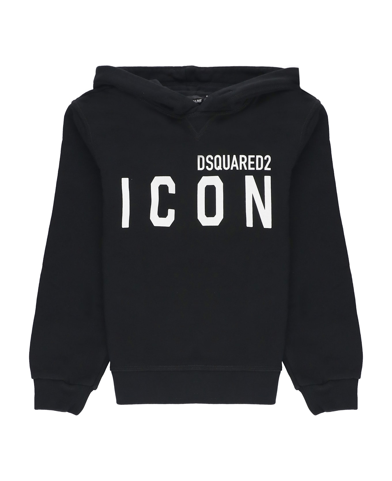 - Black Dsquared2 Kids cotton hoodie for boy - Hood - Long sleeves - Front contrasting color logoed print - Elastic ribbed trims