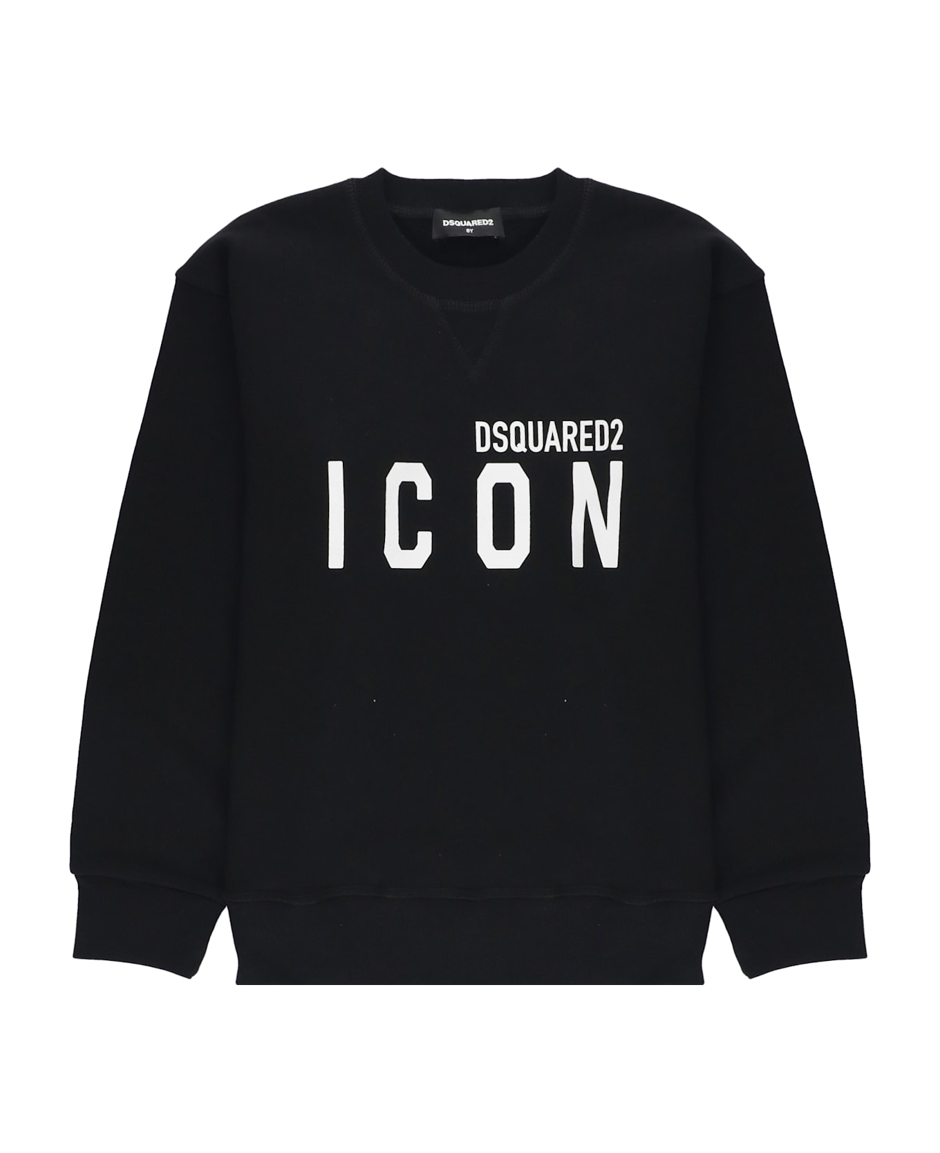- Black Dsquared2 Kids cotton sweatshirt for boy - Crewneck - Long sleeves - Elastic ribbed trims - Front contrasting color logoed print