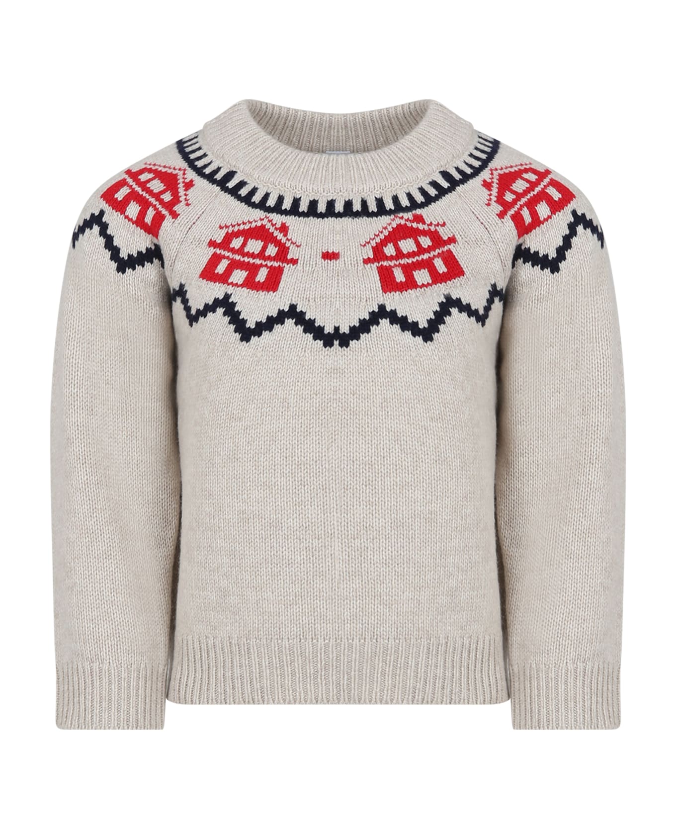 Ivory Sweater For Boy With Jacquard Pattern