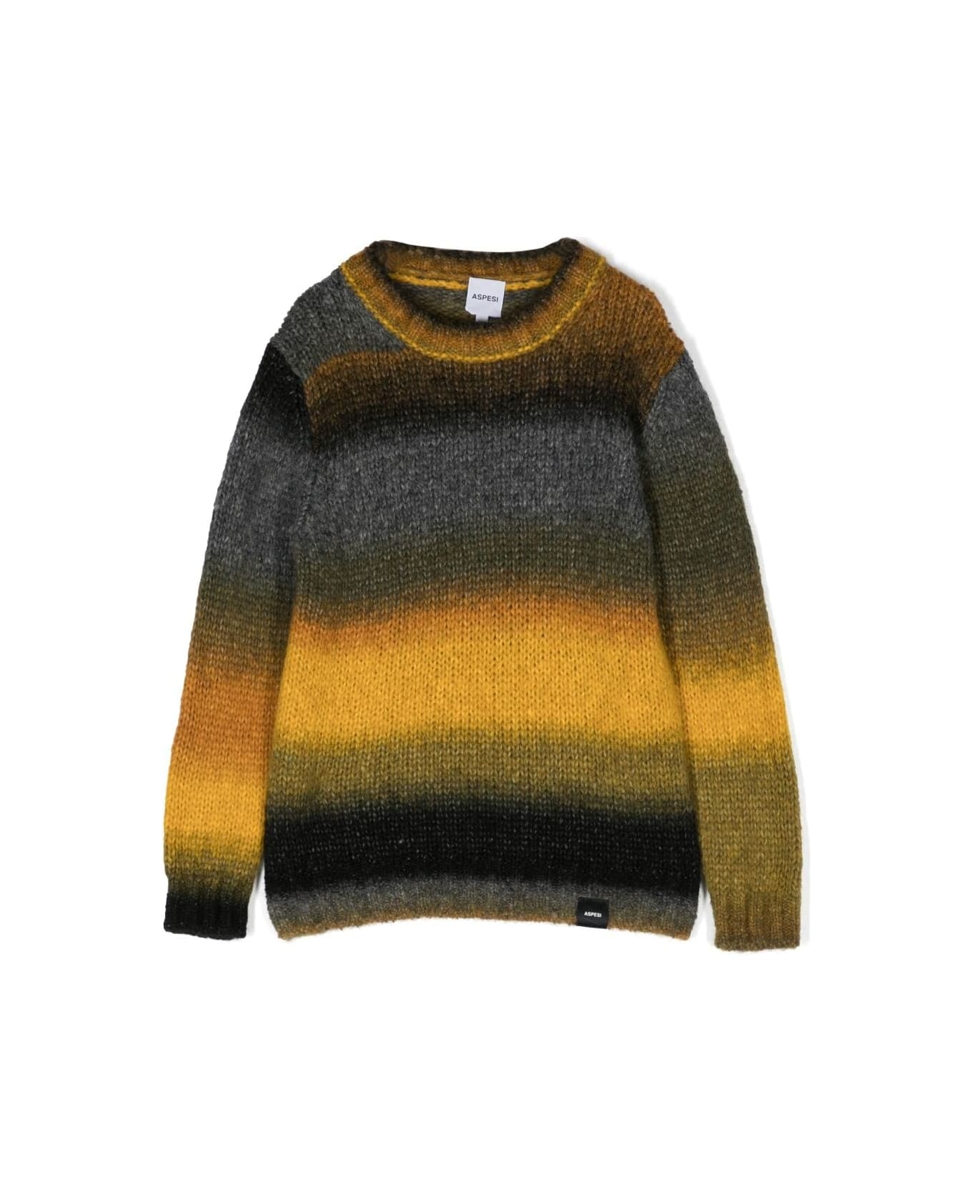 Maglione girocollo con righe orizzontali e mini targhetta con logo Composizione Acrilico 32%, Lana 32%, Nylon 20%, Alpaca 16% Istruzioni per il lavaggio Lavare a mano