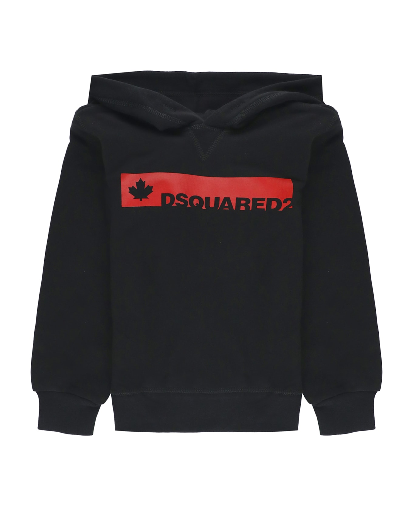 - Black Dsquared2 Kids cotton hoodie for boy - Hood - Long sleeves - Front contrasting color logoed print - Elastic ribbed trims