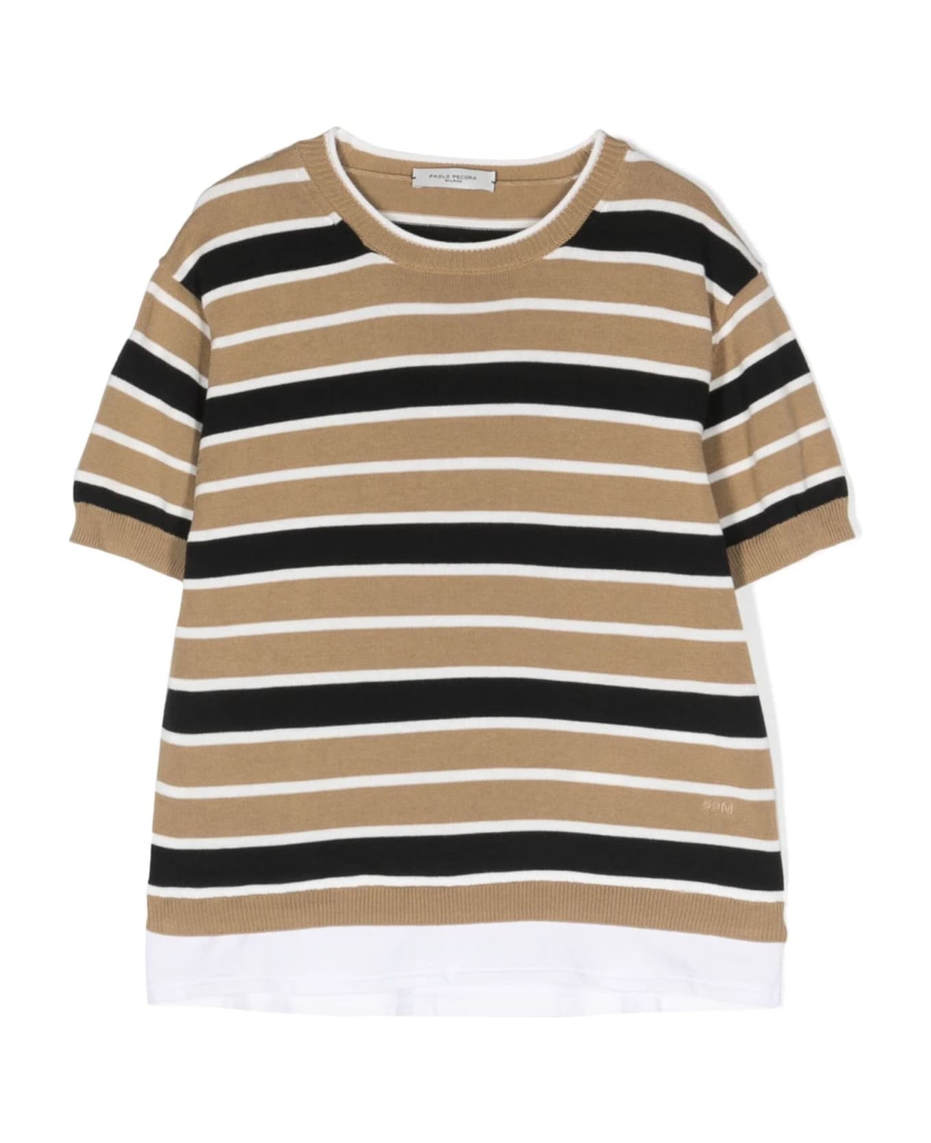 Beige, black/white, cotton, knitted construction, horizontal stripe pattern, ribbed edge, crew neck, short sleeves and straight hem. Composition: Cotton, 100%