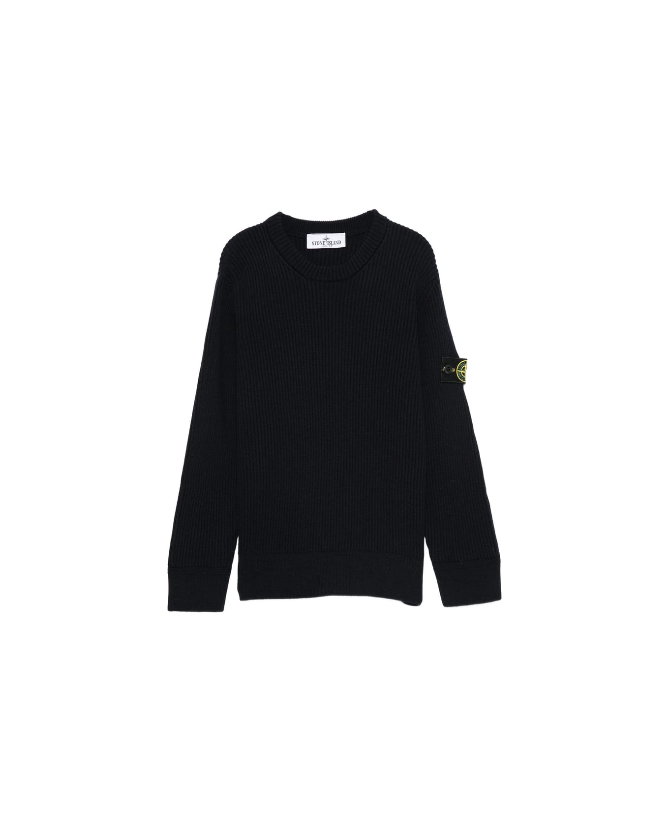 black ribbed knit round neck long sleeves logo patch
