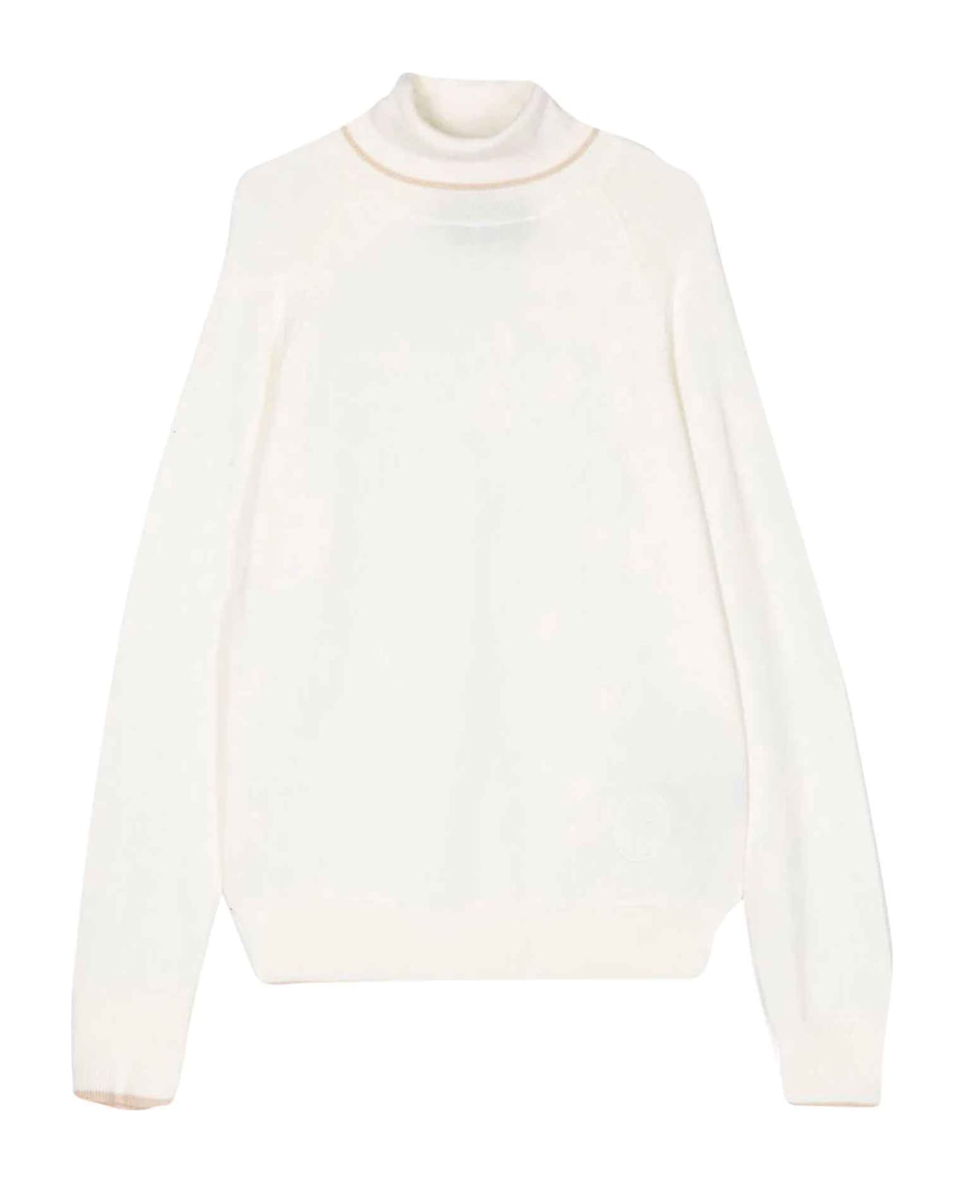 white turtleneck boy. Fine knit, high neck, contrast trim, long sleeves and straight hem. Viscose 70%, Nylon 30%