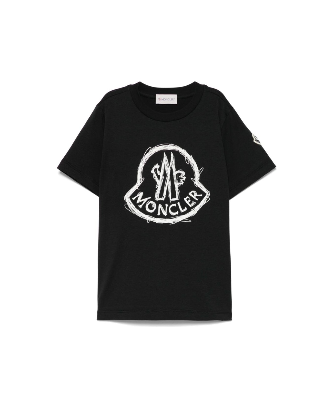 Black T-shirt With Round Neck, Logo On The Front, And Logo Patch On The Sleeve In Cotton Boy