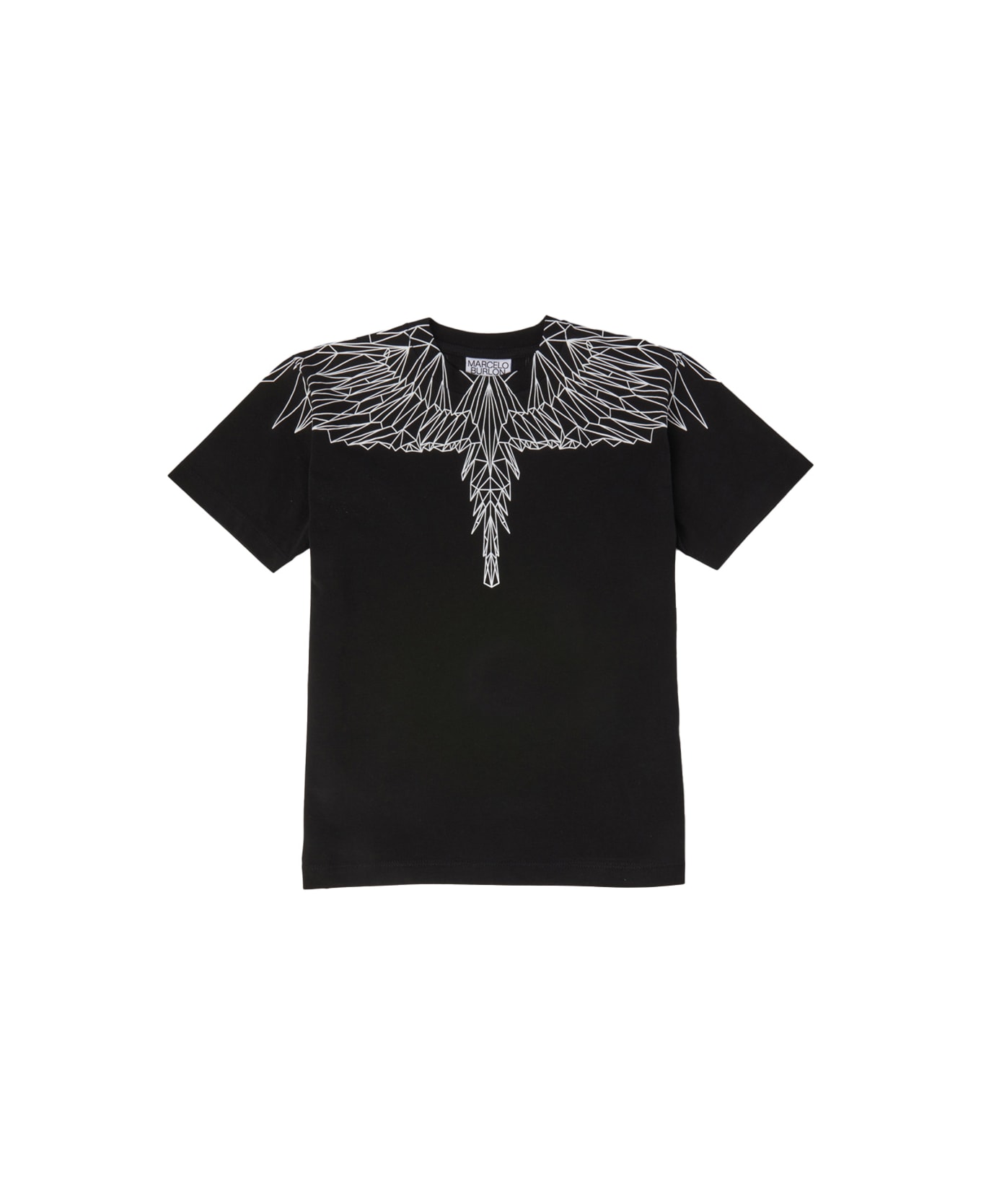 Marcelo Burlon Kids t-shirt made of black cotton jersey and featuring a regular fit, crew neck, short sleeves, straight hem and iconic white Triangle wings printed on the shoulders.