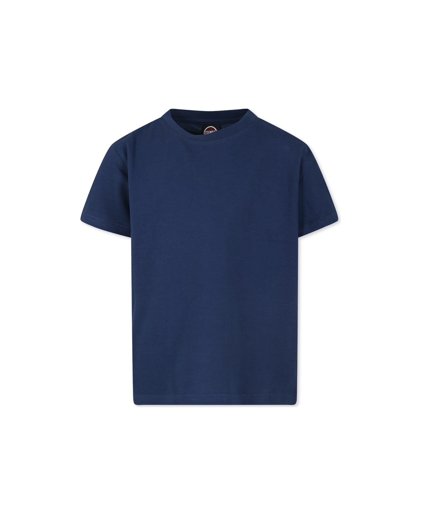 Blue cotton piqué t-shirt with short sleeves and ribbed crew neck. It is embellished with iconic rubberized logo on the sleeve.