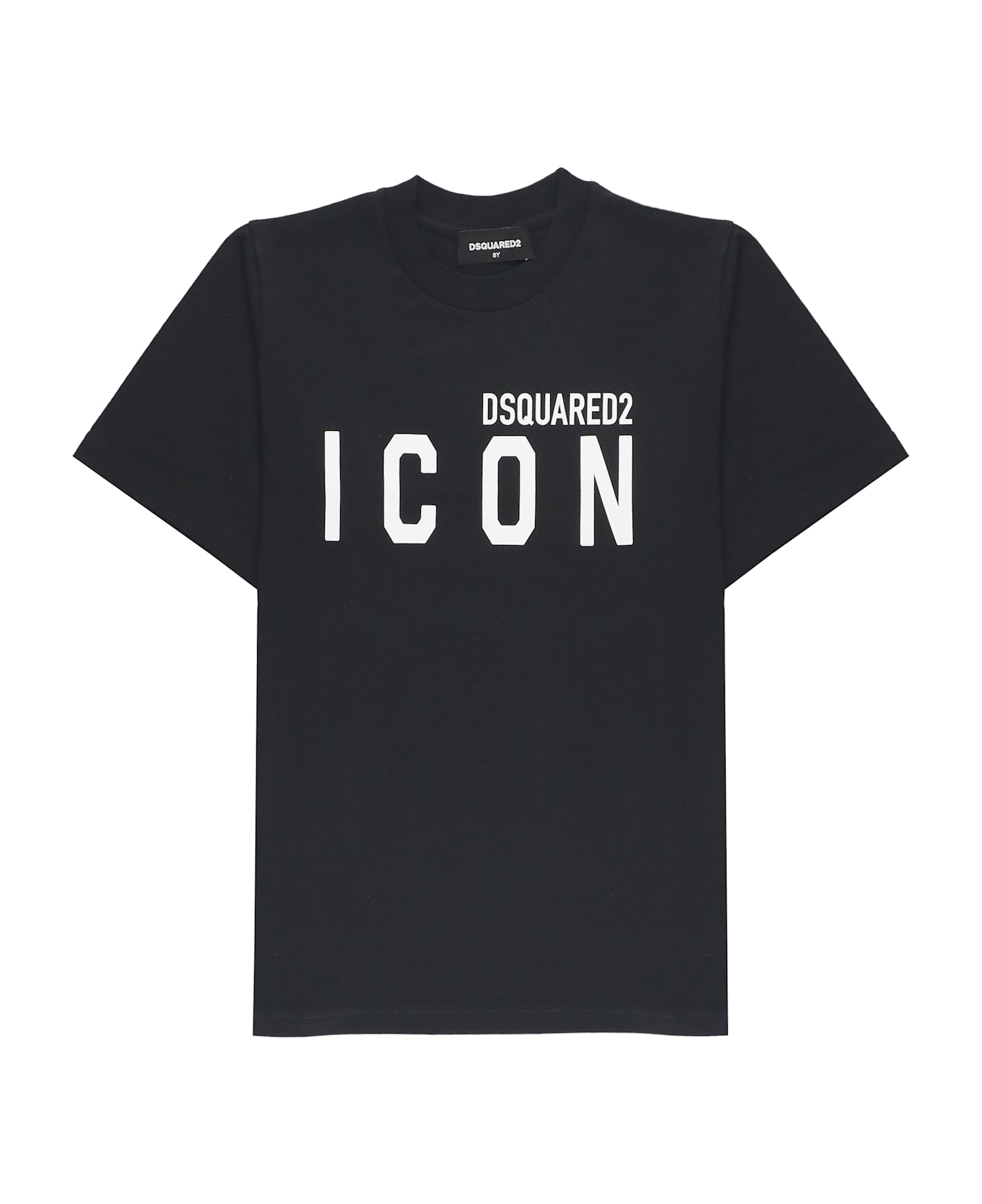 - Black DSQUARED2 KIDS cotton t-shirt for boy - Crew neckline - Short sleeves - Front contrasting color logo