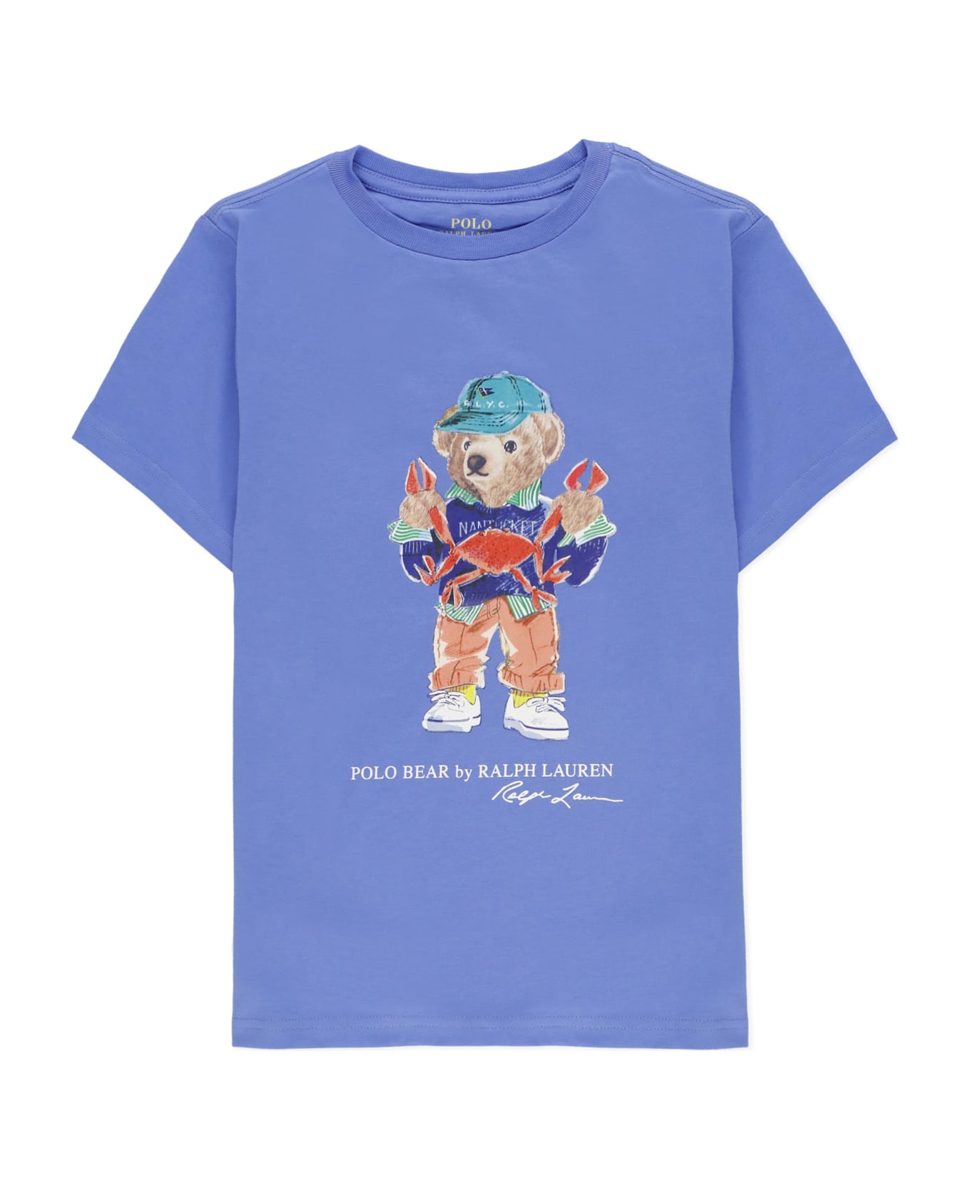 - Blue Ralph Lauren cotton t-shirt for boy - Crew neck - Short sleeves - Front contrasting color print with logo