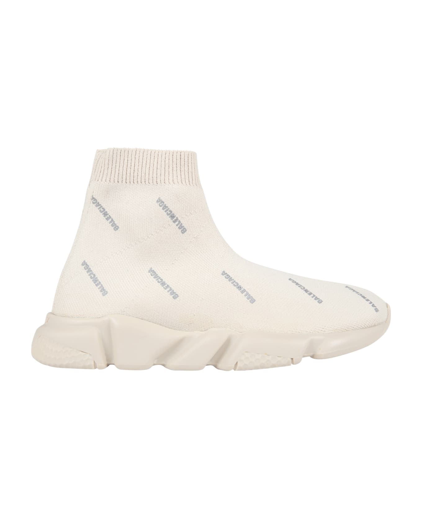 Beige socks sneakers, with rubbered sole; they are embellished with logos all-over.