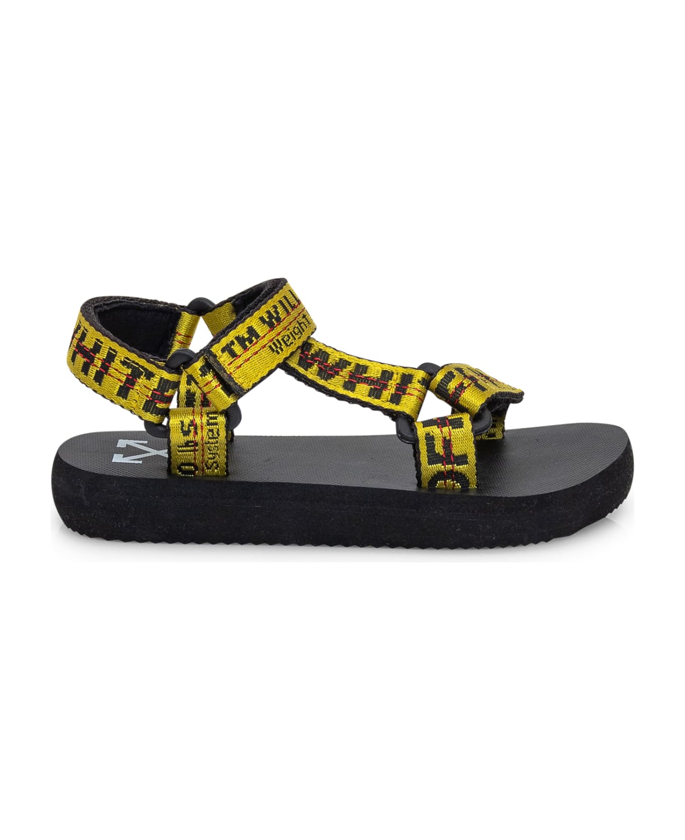 Yellow sandal. Tear closure. Fabric strap with logo.