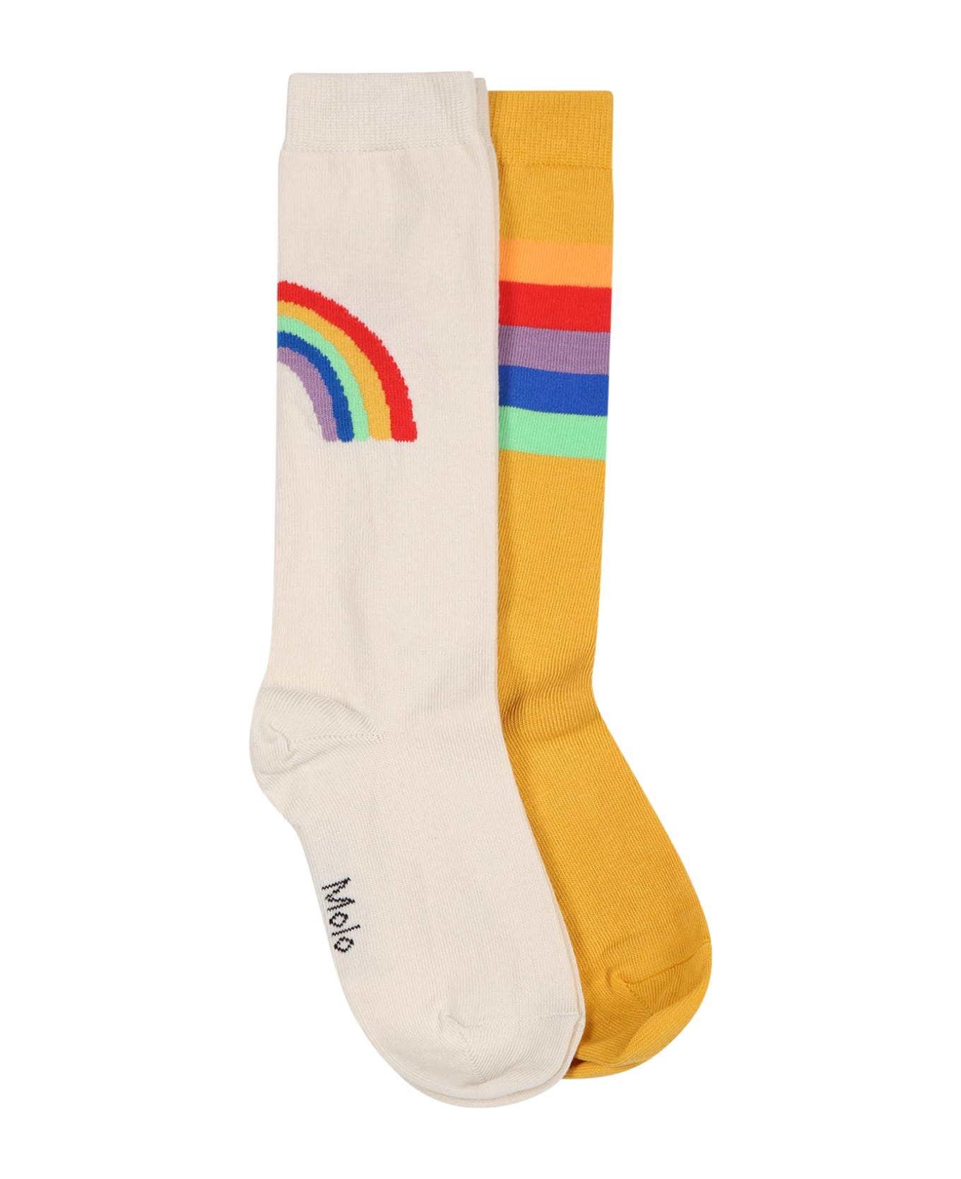 Multicolor set composed of two pairs of terry socks, one yellow and the other ivory, with ribbed hem. They are embellished with rainbow, multicolor stripes and "Molo since 2003" writing, for the 20th anniversary of the brand.