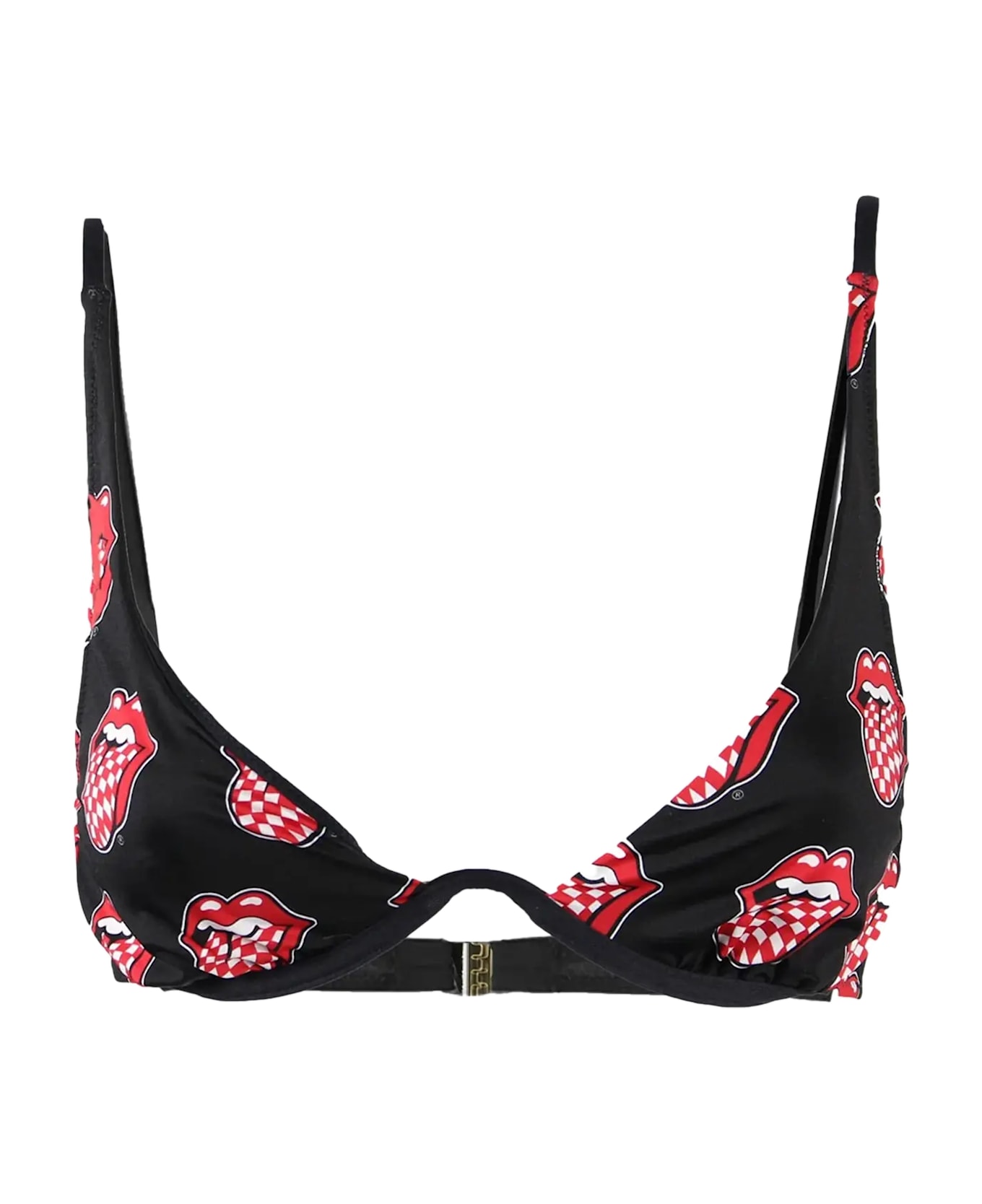 V-wired top Rolling Stones tongue print Adjustable straps Stretch Regular fit Composition: 90% polyamide, 10% elastane