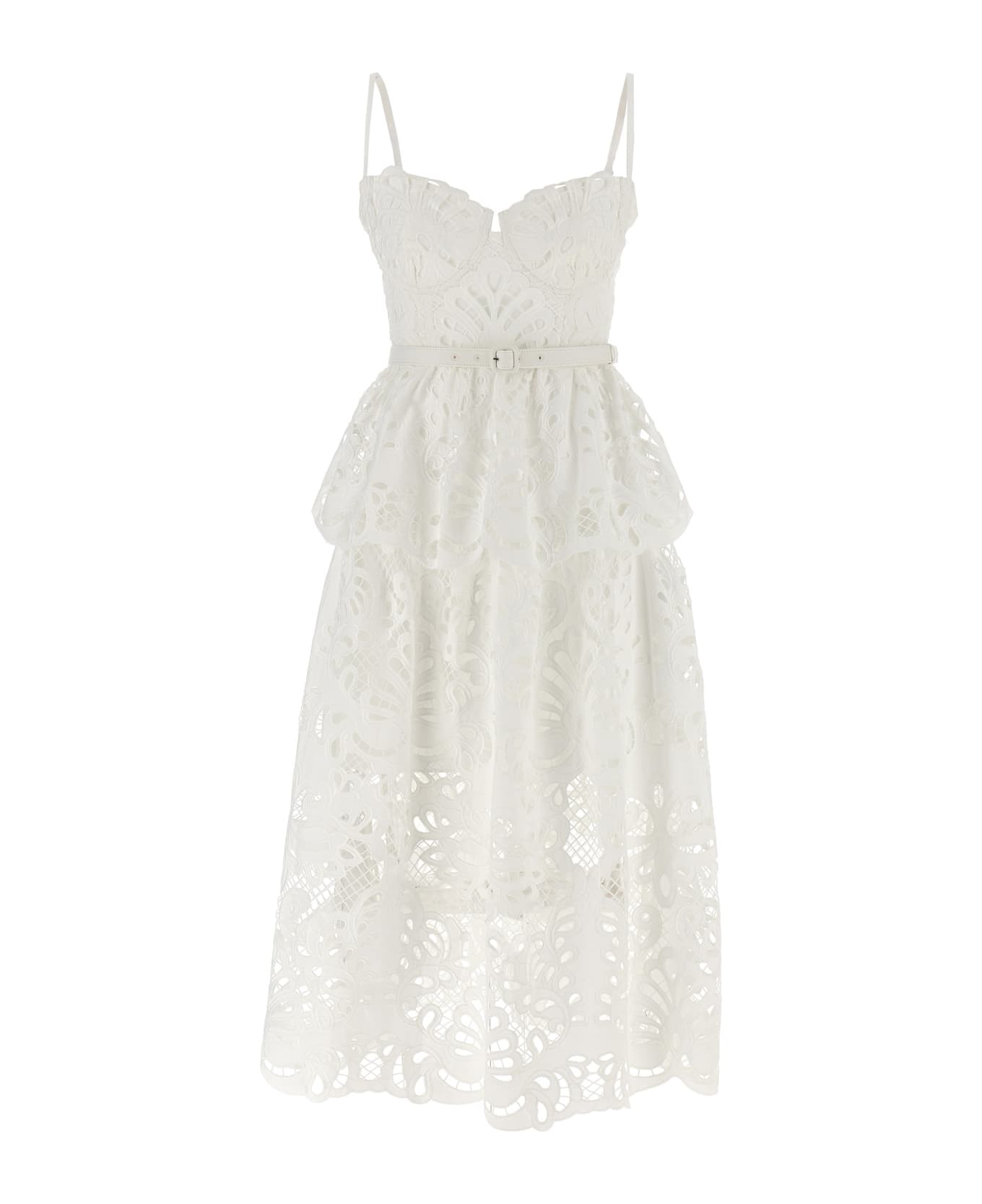 'white Cotton Lace Tiered Midi' Dress