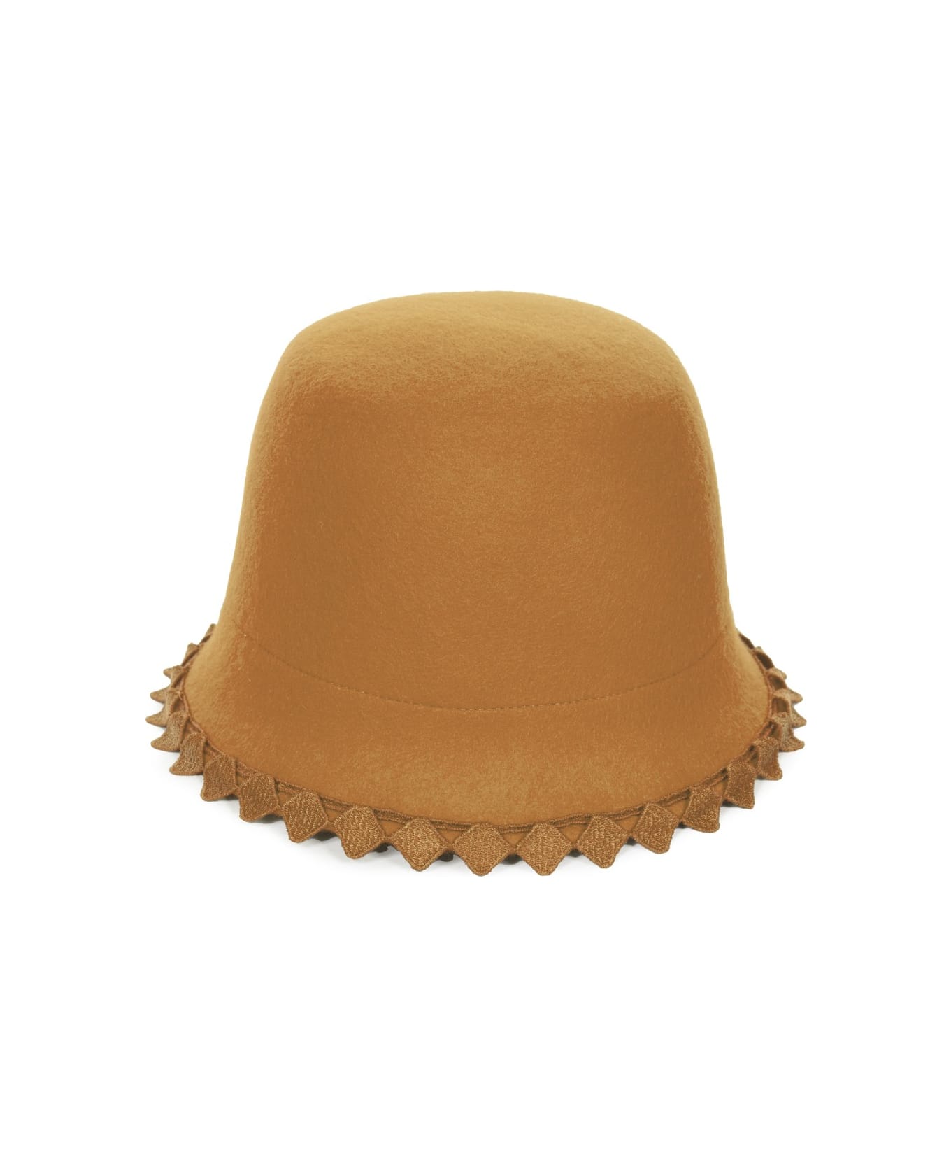 geometric-trim wool bowler hat from MI MI SOL featuring beige, wool, contrasting trim, round crown and dropped narrow brim.