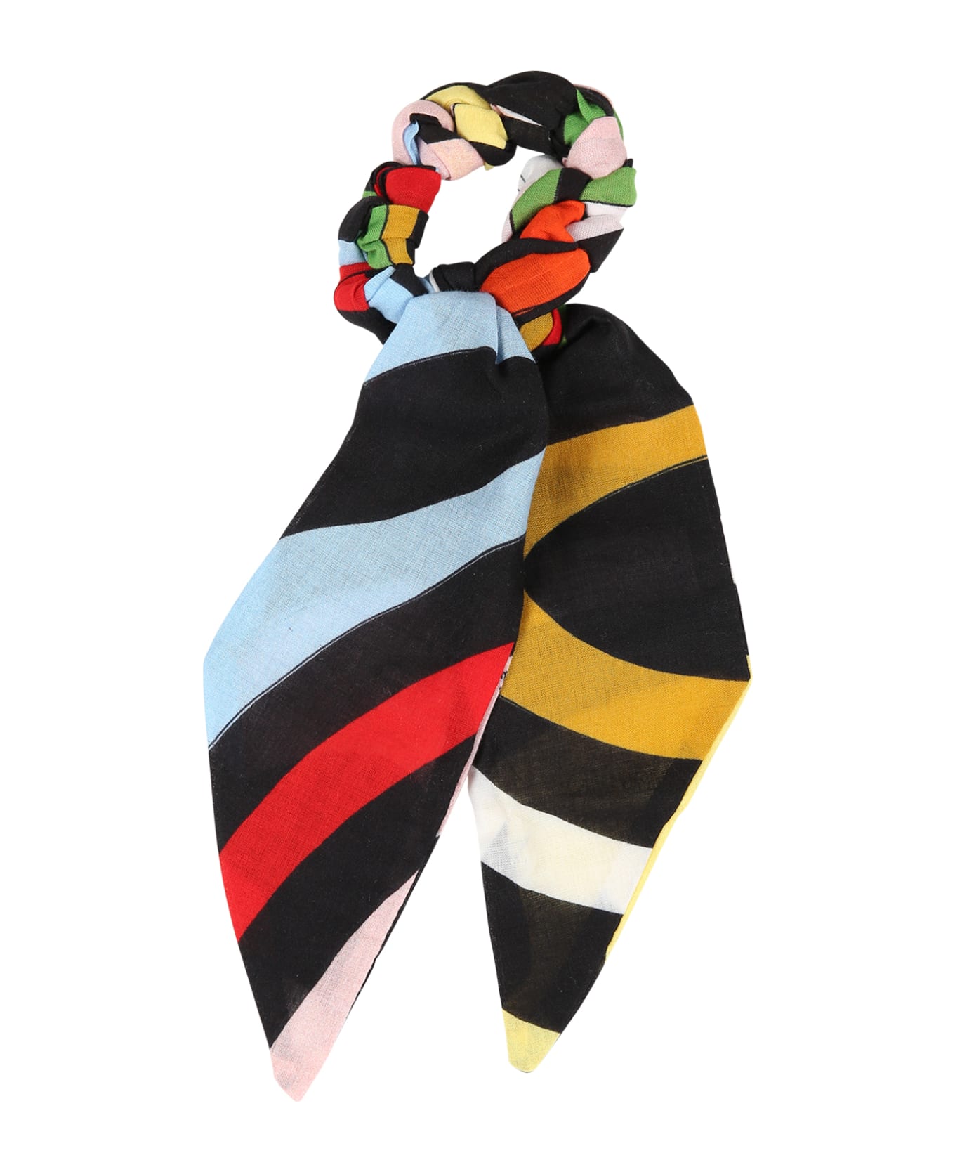 Multicolor elastic for hair, in cotton, with knot on the top. It is embellished with all-over print and logo.