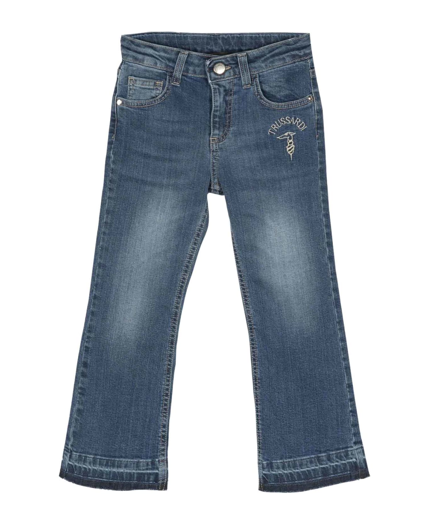 Blue trousers girl. Faded effect, front logo embroidery, back logo patch, belt loops, a straight fit, button and concealed zip fastening and classic five pocket design. Cotton 98%, Spandex/Elastane 2%