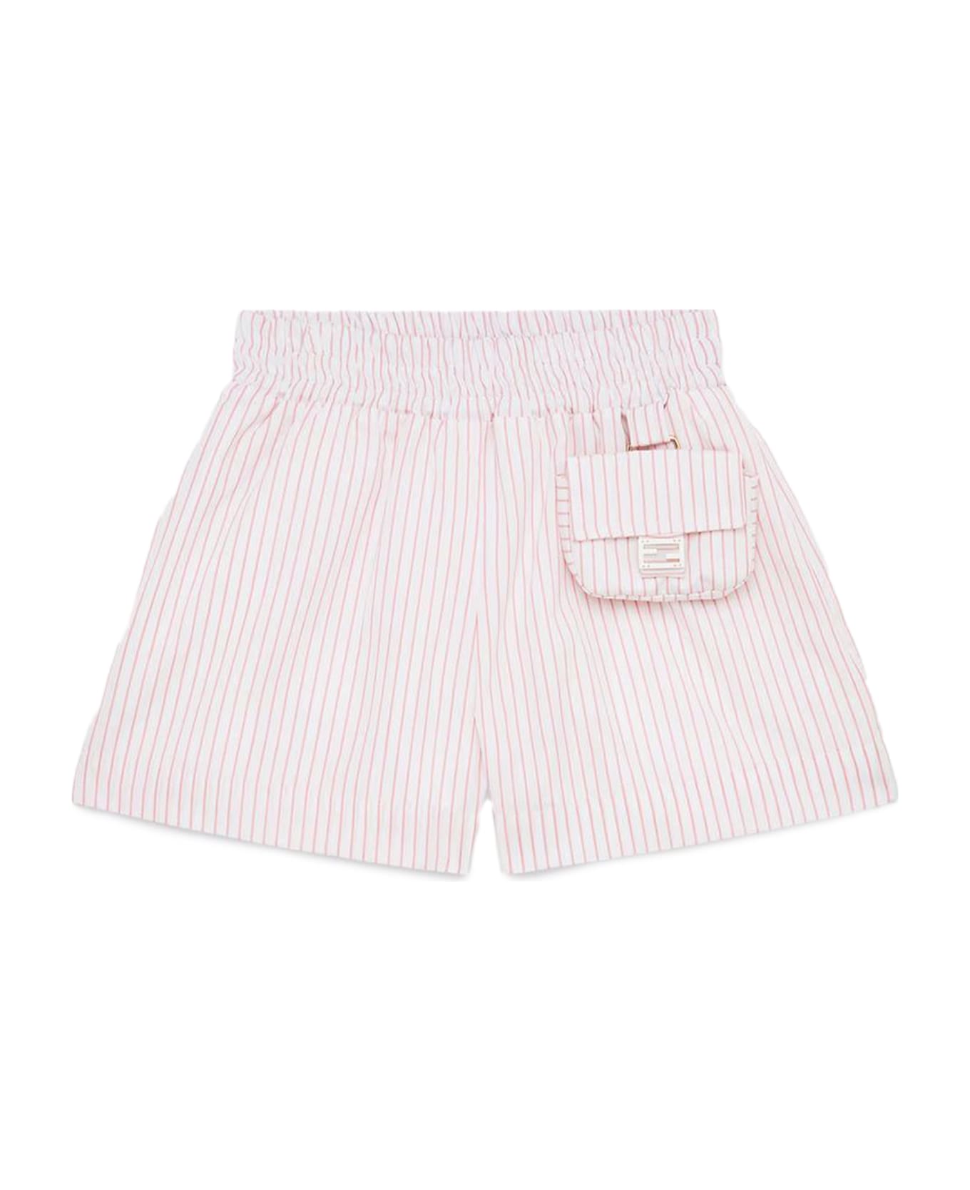 Multicolored striped poplin junior shorts in shades of white and pink with micro Baguette applique at the waist Composition: Cotton, 100%