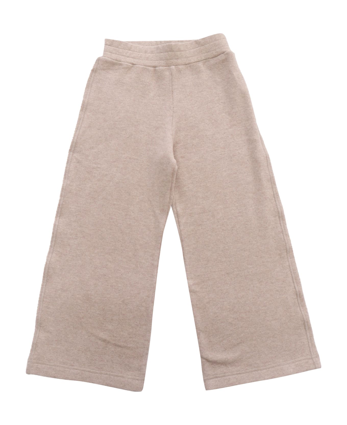 Wide pants in stretch cotton blend, elasticated waist, patch pocket on the back with heart embroidery