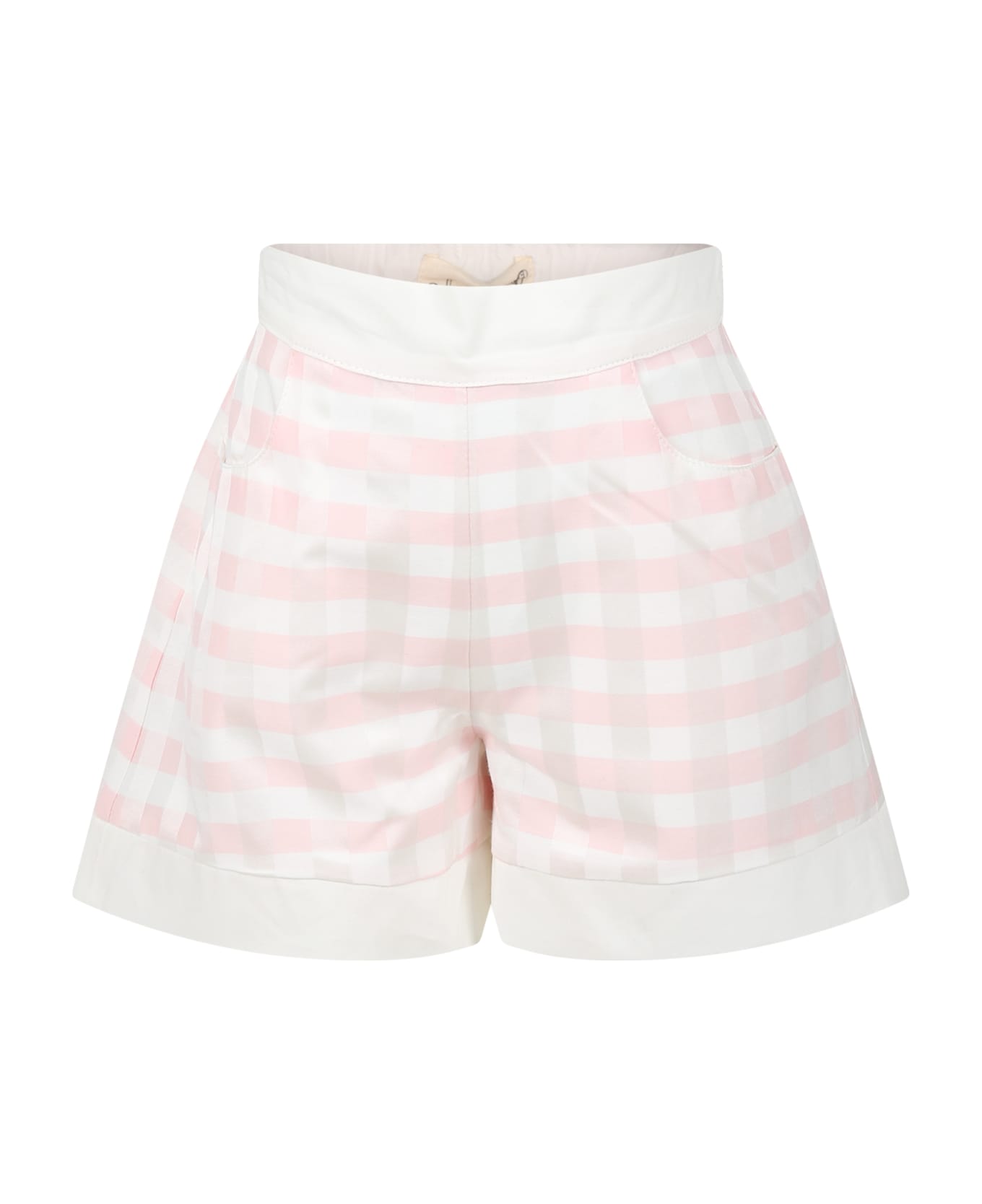 Pink shorts, gingham pattern, side pockets and elastic on the back.