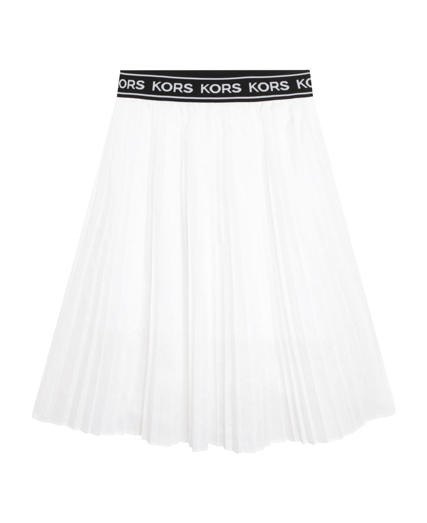 logo-waistband pleated skirt from MICHAEL KORS KIDS featuring cloud white, ripstop texture, logo waistband, elasticated waistband, fully pleated and straight hem.