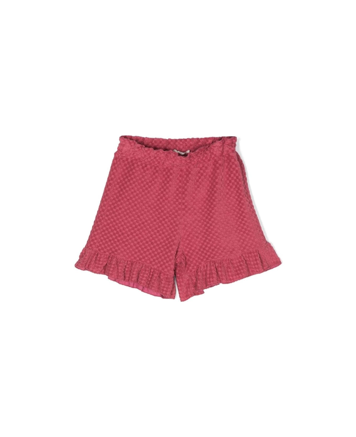 Fucsia, cotone, vita elasticizzata, orlo increspato e lunghezza sopra il ginocchio. Cotone 76%