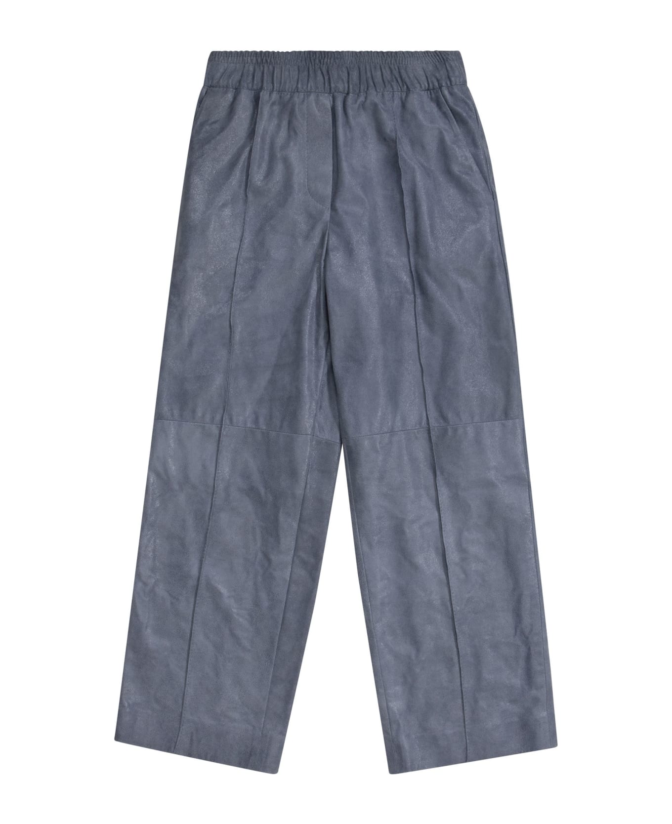 Wide and light lines make the new leather trousers an ideal garment for the new season. A soft dart runs through the texture while the elastic waistband perfects wearing comfort. - Side pockets - Back welt pockets - Elasticated waistband DESIGNER ID: BPCSTP095C C8775 Composition: 100% Leather Lining: 65% Acetate, 35% Polyester