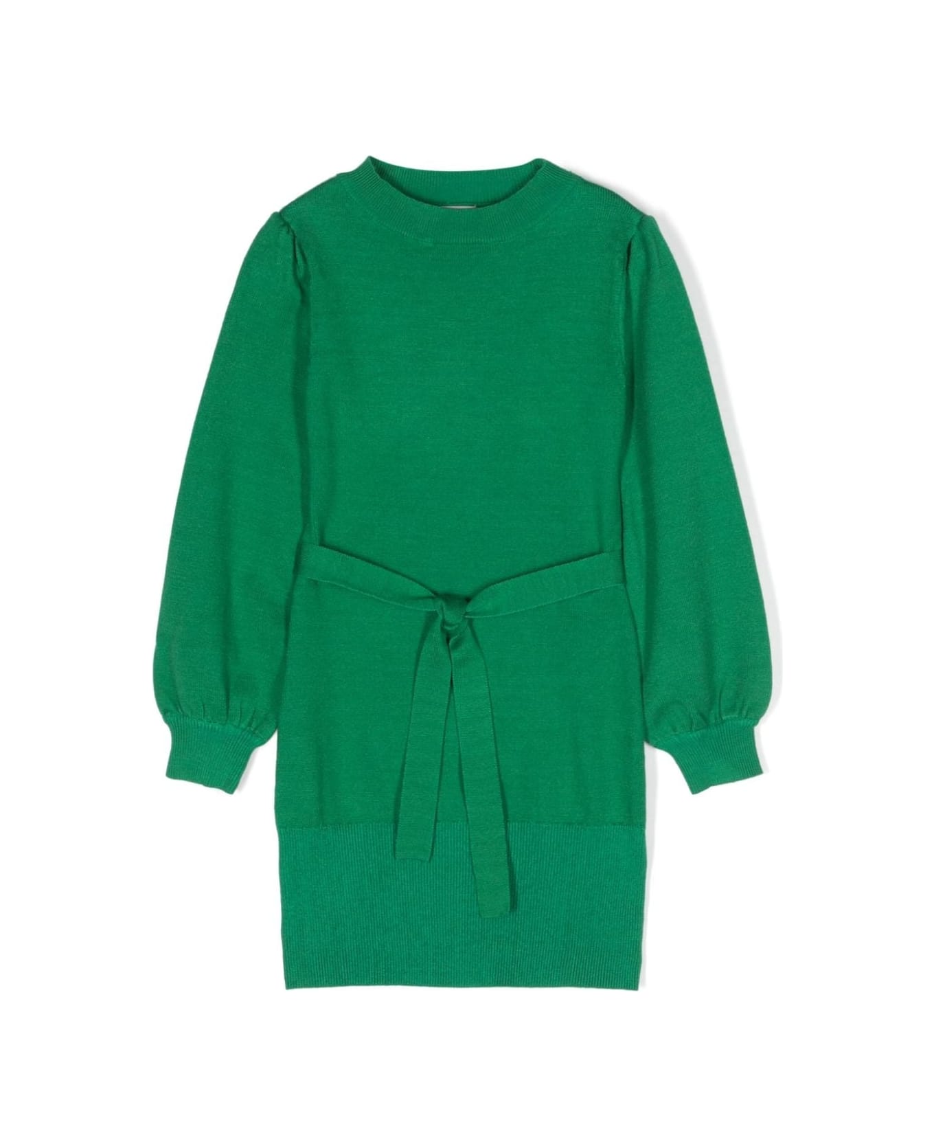 Abito lavorato a maglia con cintura, scollo tondo e maniche lunghe a palloncino. Composizione Nylon 57%, Viscosa 43% Istruzioni per il lavaggio Lavare a mano