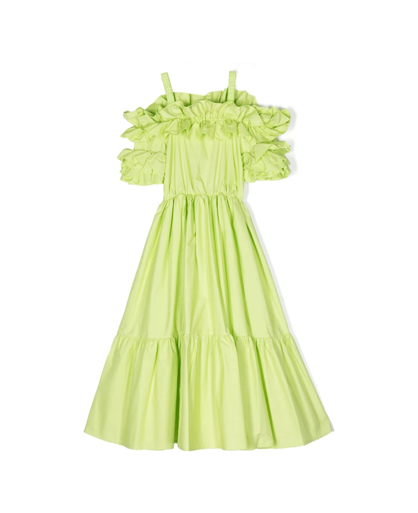 Abito lungo a strati con spalle scoperte di MISS GRANT KIDS. Caratterizzato da azzurro, cotone, design a strati, spalline sottili, gonna svasata con spalle scoperte. Cotone 100%