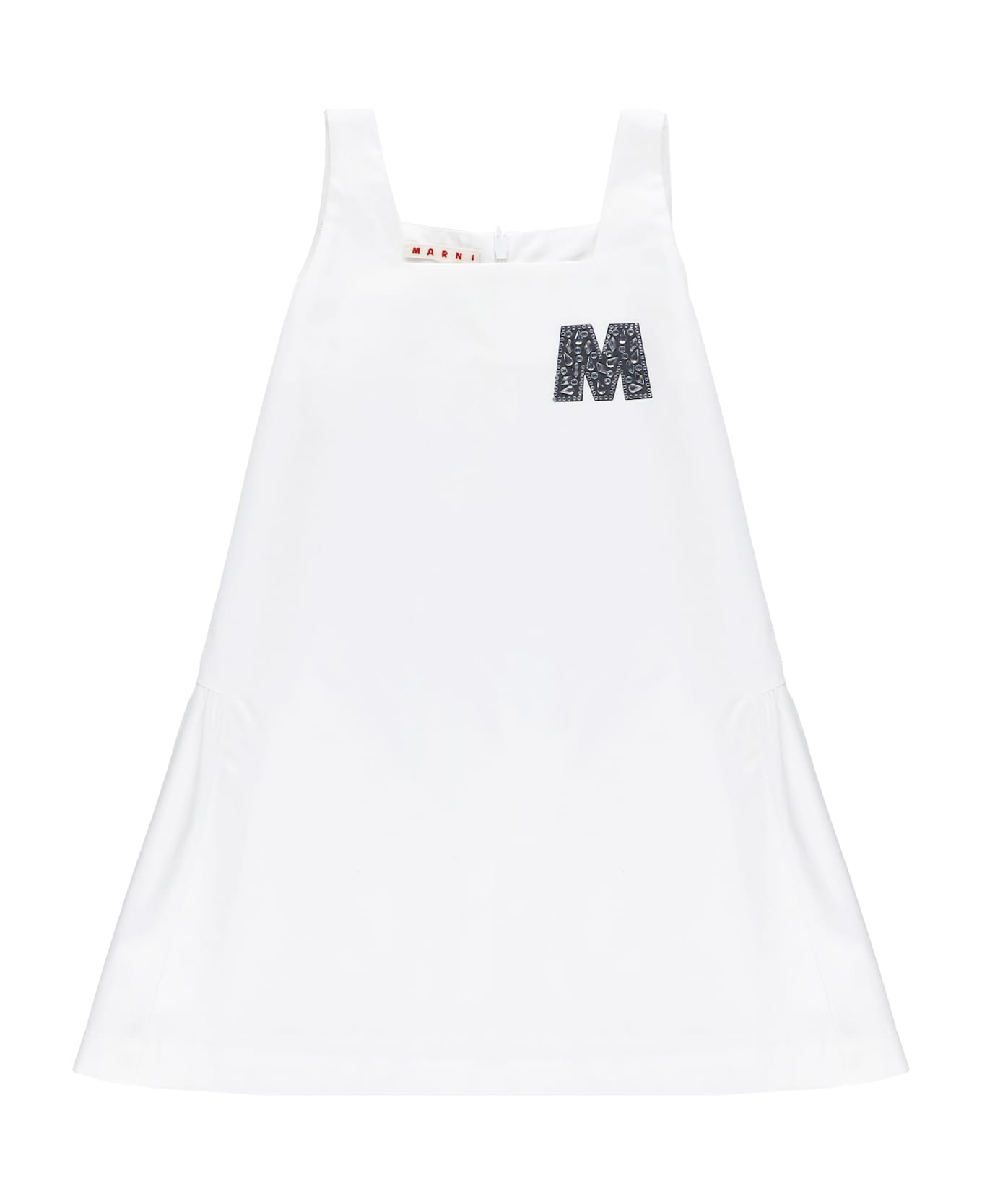 - White Marni Kids cotton dress for girl - Round neck - Sleeveless - Front strass details - Rear zip fastening Composition: 100% Cotton