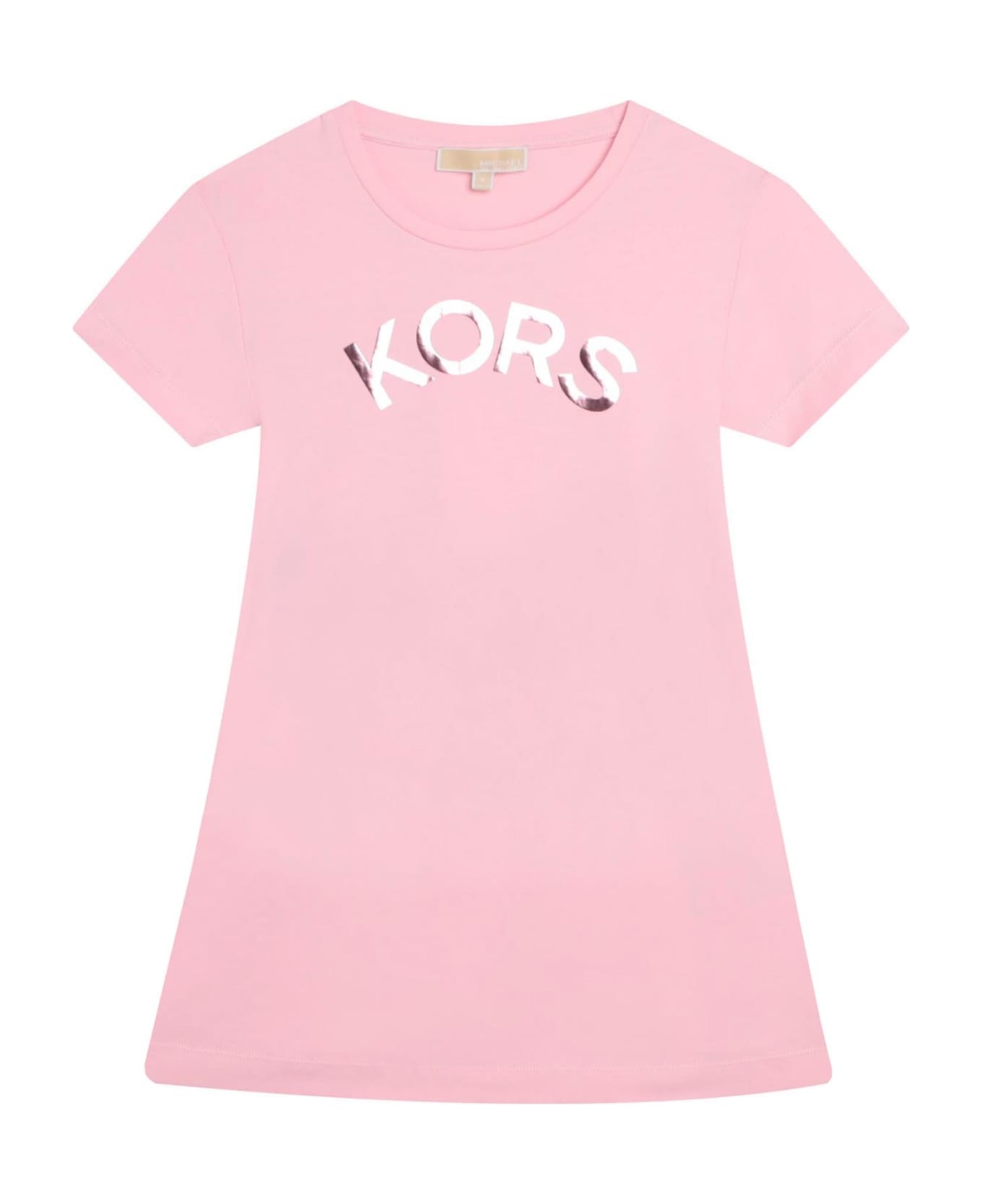 Dress with logologo-print short-sleeve T-shirt dress from MICHAEL KORS KIDS featuring light pink, cotton blend, jersey knit, cut-out detailing, logo print to the front, round neck, short sleeves, logo waistband, flared skirt and straight hem.