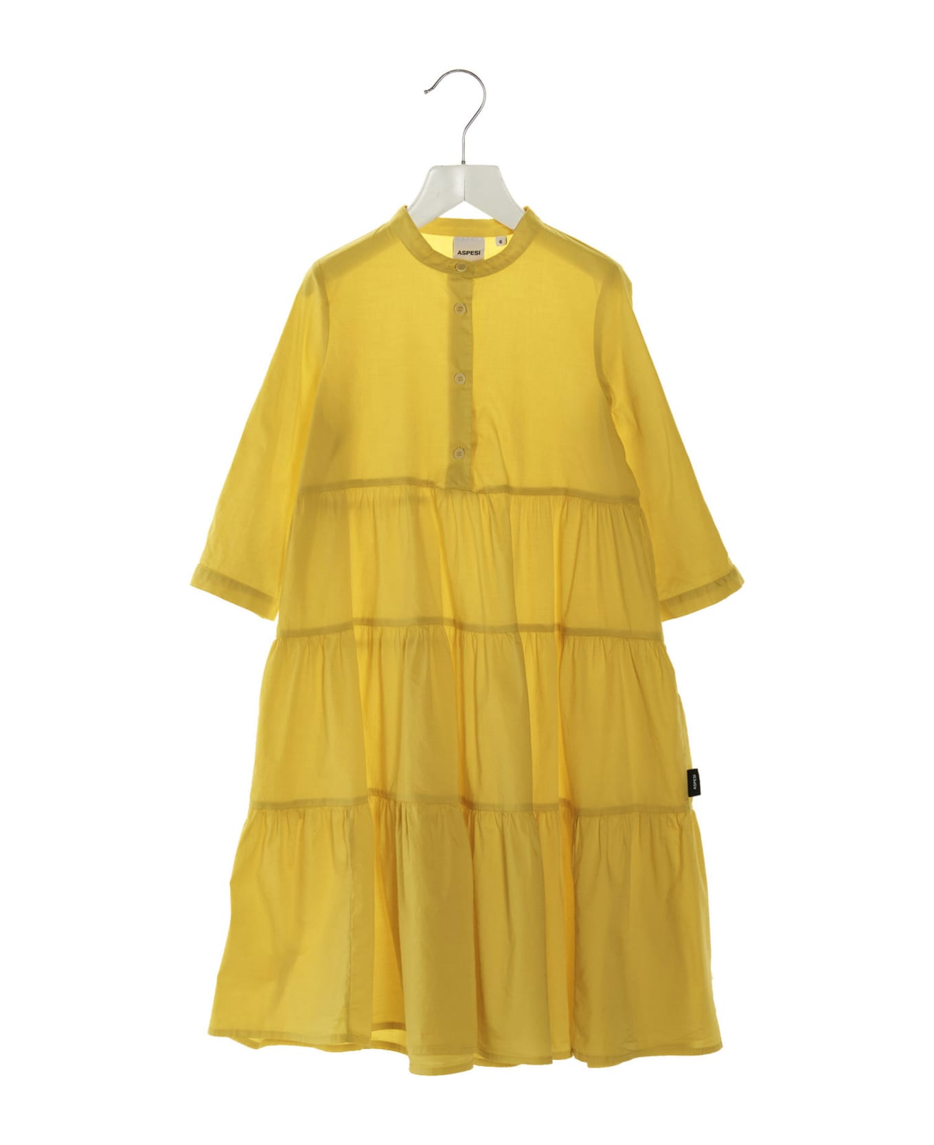 Cotton shirt dress with tiered skirt, button collar and long sleeves. es.